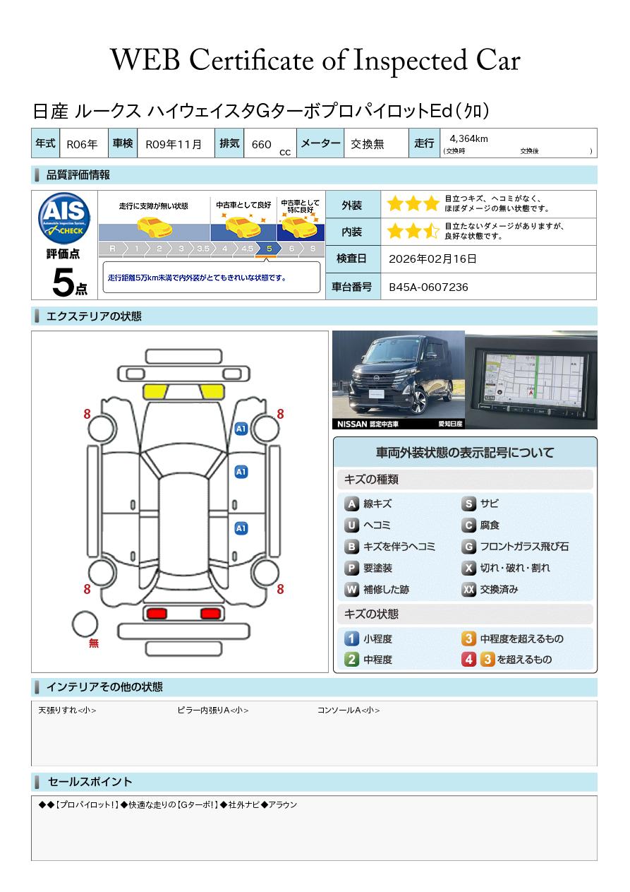 現状括弧書き内の年月まで車検有効期限が残っていますが、ご成約時に新しく車検を取り直します。なお取り直しの費用は車両価格に含まれています。