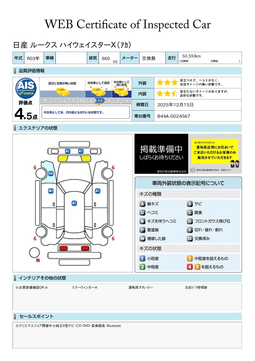 現状車検切れの状態であり、車検費用は車両価格とは別でご負担いただく必要があります。