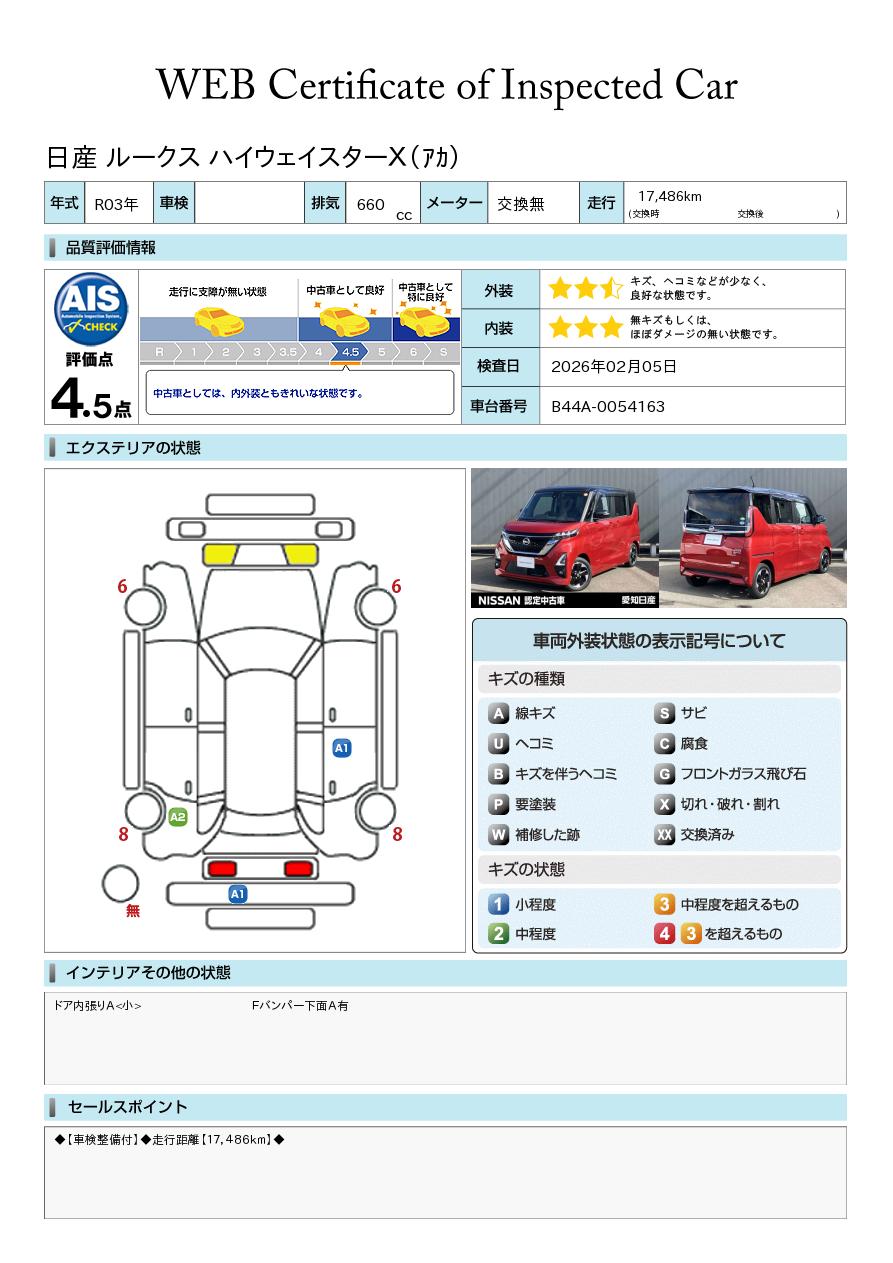 現状括弧書き内の年月まで車検有効期限が残っていますが、ご成約時に新しく車検を取り直します。なお取り直しの費用は車両価格に含まれています。