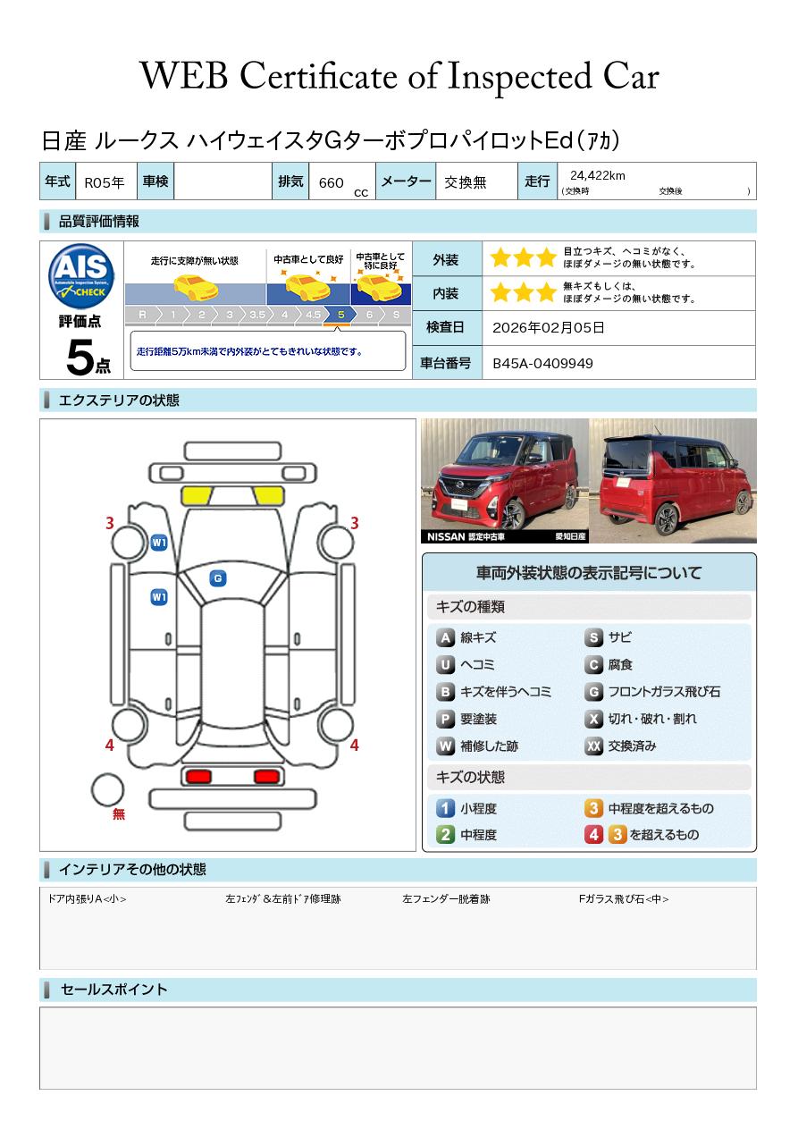 現状括弧書き内の年月まで車検有効期限が残っていますが、ご成約時に新しく車検を取り直します。なお取り直しの費用は車両価格に含まれています。
