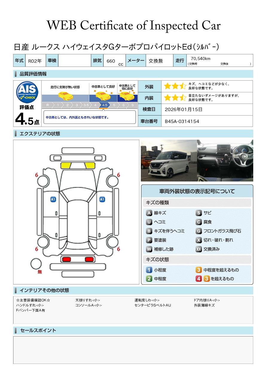 現状括弧書き内の年月まで車検有効期限が残っていますが、ご成約時に新しく車検を取り直します。なお取り直しの費用は車両価格に含まれています。