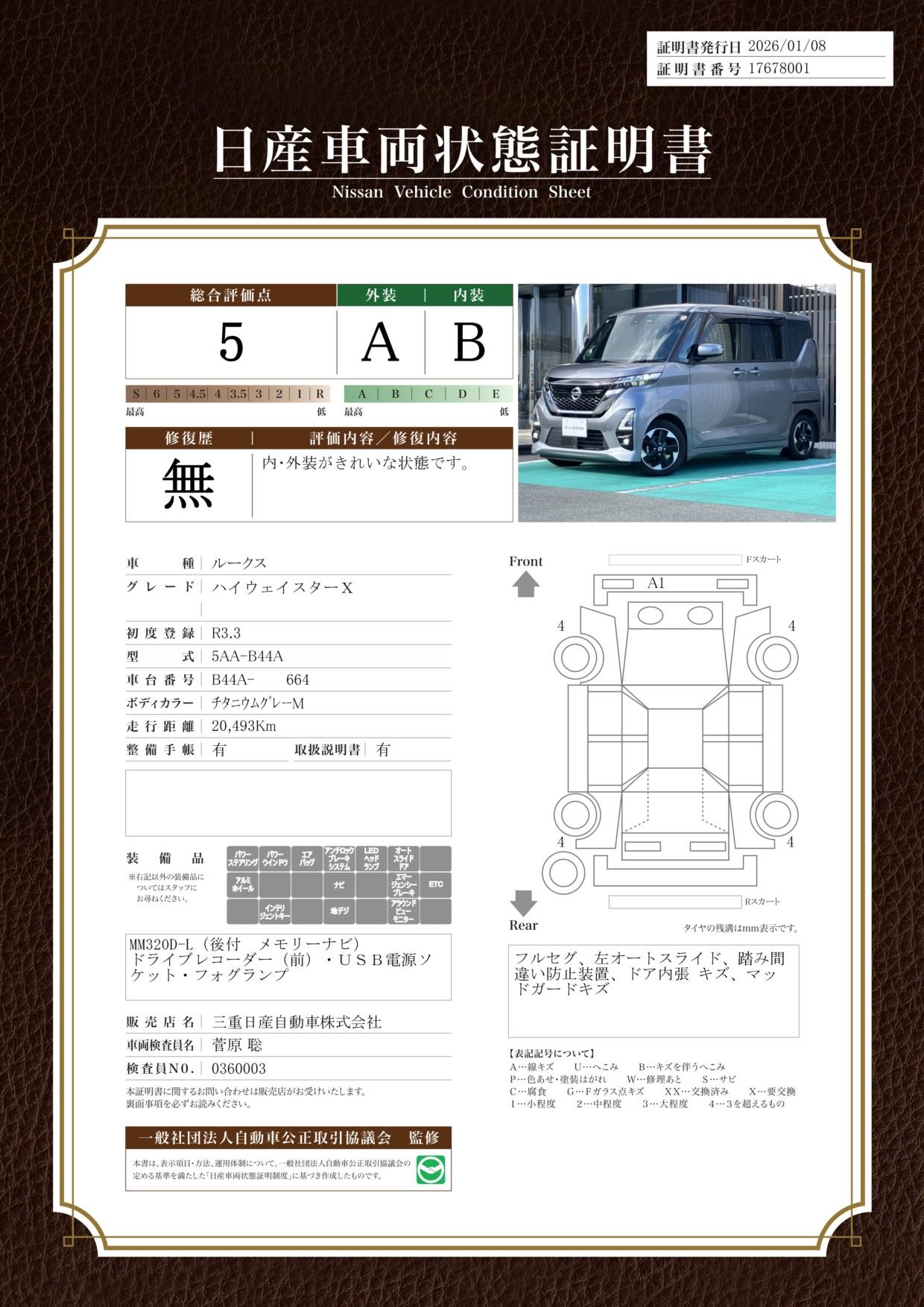 現状括弧書き内の年月まで車検有効期限が残っていますが、ご成約時に新しく車検を取り直します。なお取り直しの費用は車両価格に含まれています。