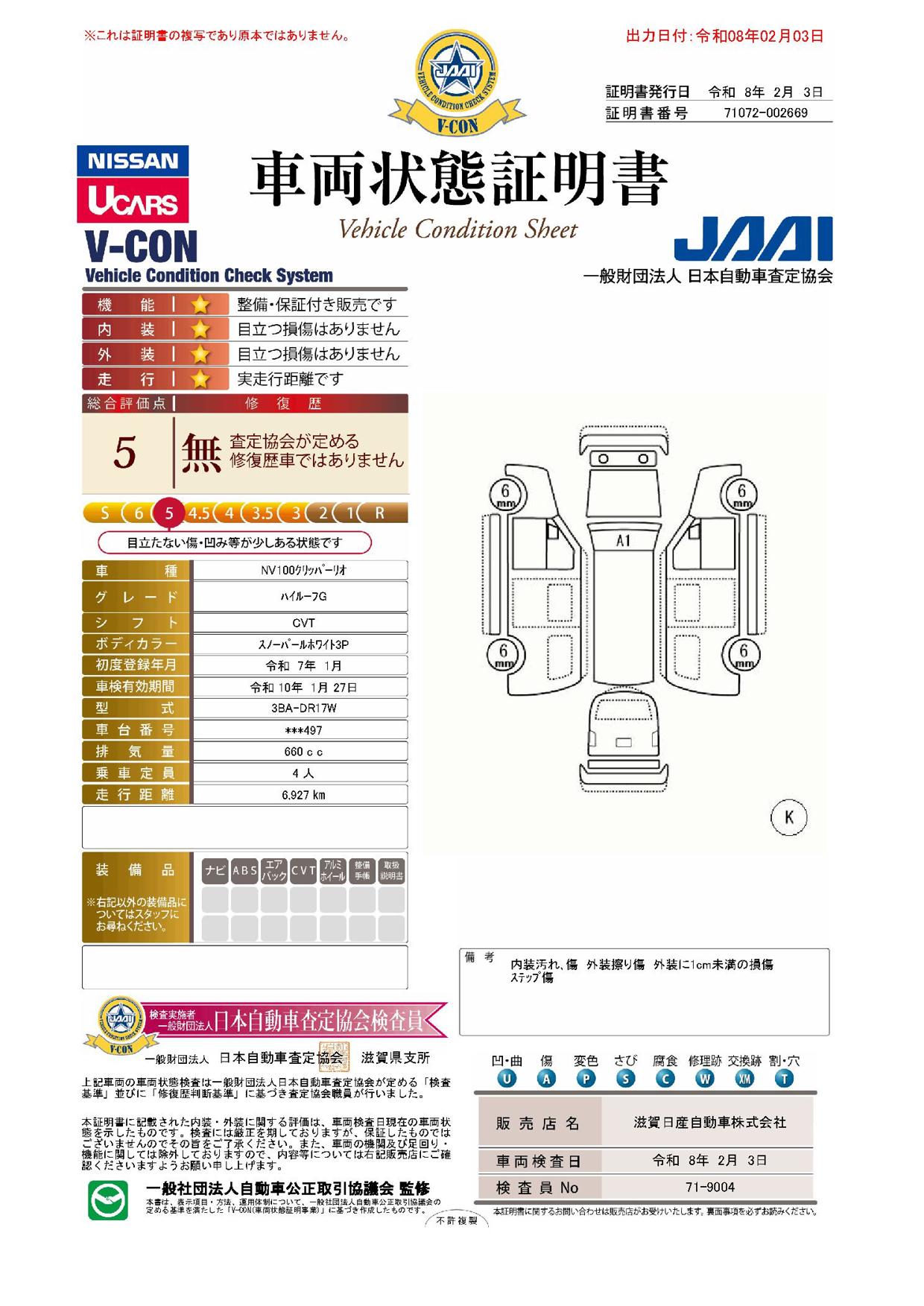 現状括弧書き内の年月まで車検有効期限が残っていますが、ご成約時に新しく車検を取り直します。なお取り直しの費用は車両価格に含まれています。