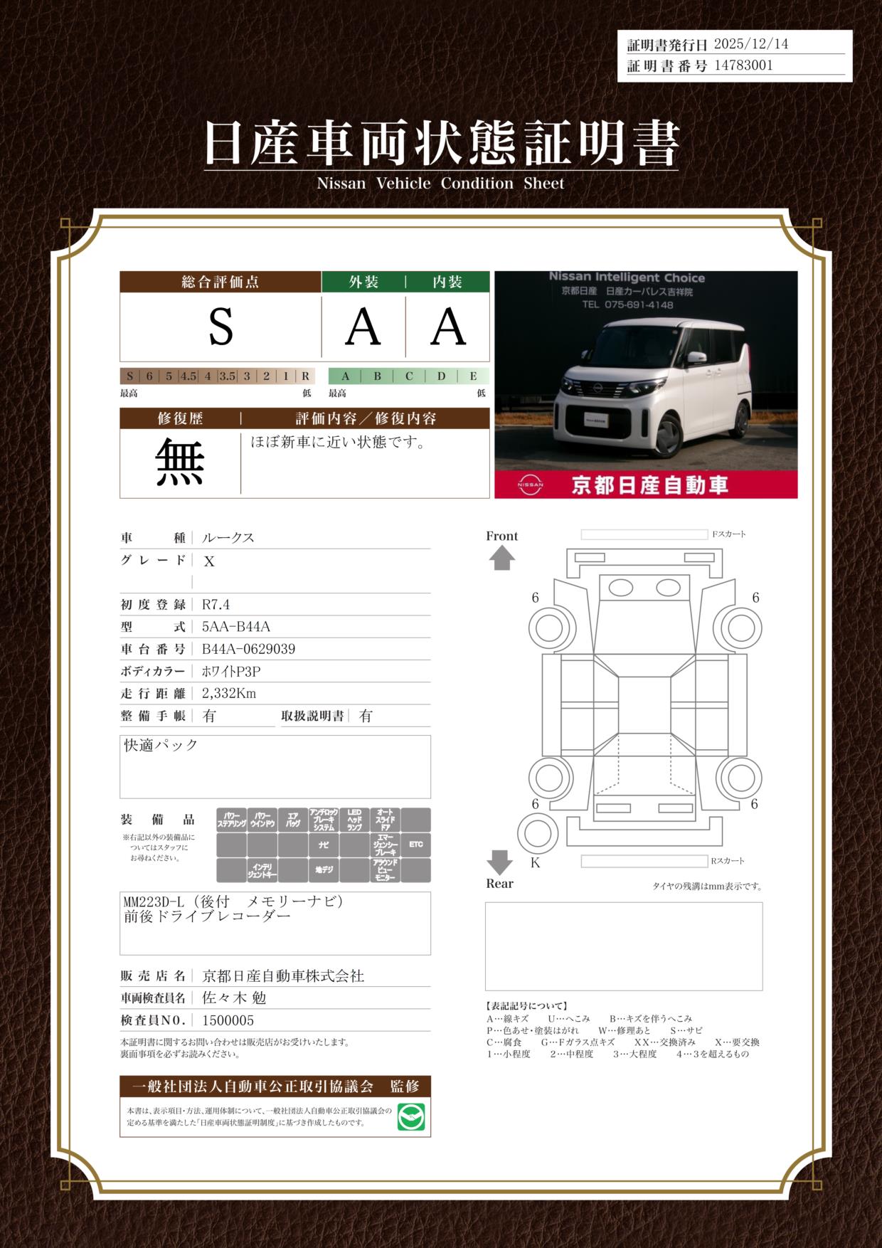 ルークス 660cc 660 Xターボ 純正ナビ AVM ドラレコ前後室内 ETC2.0