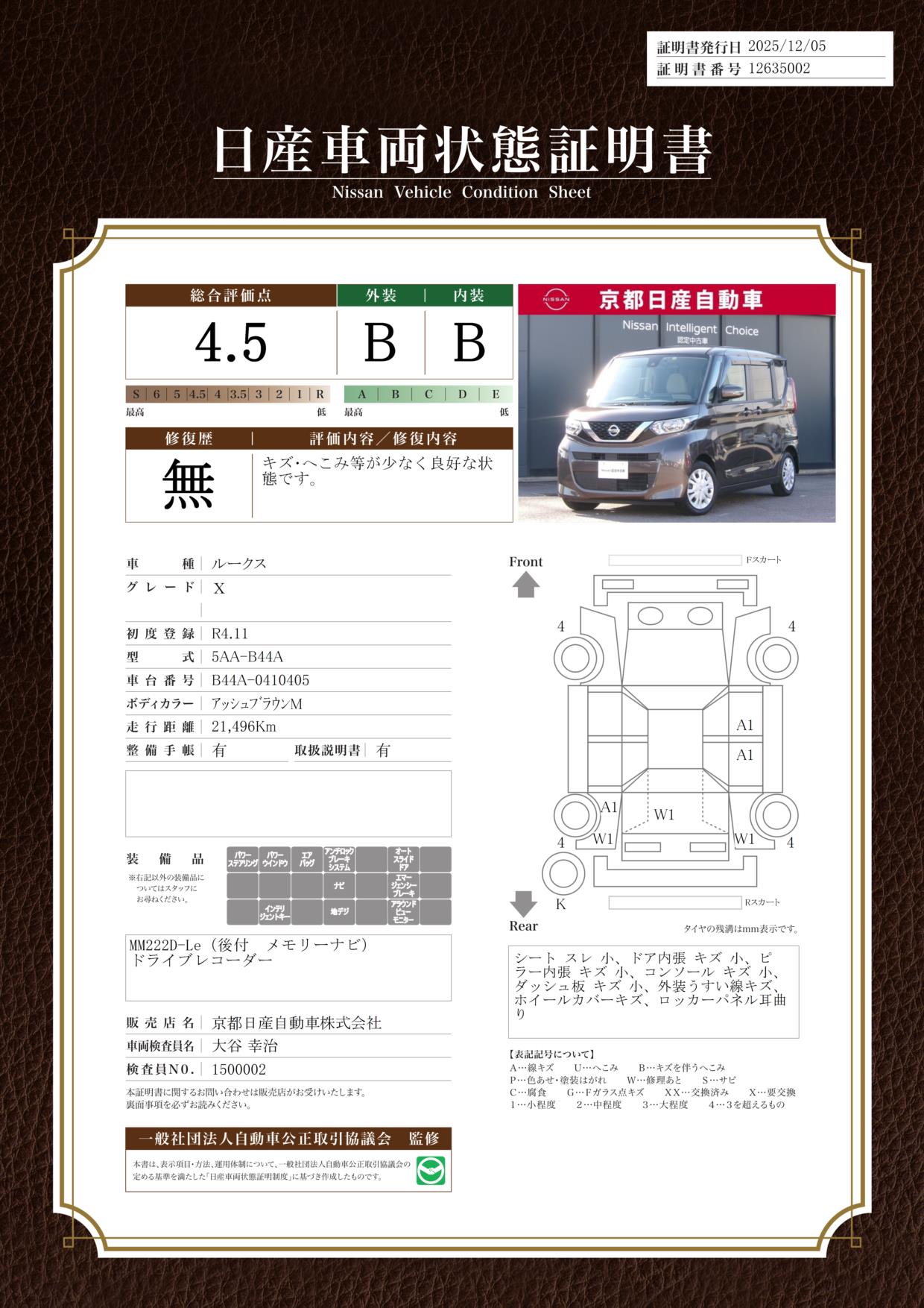 MM222D-Leナビ全方位カメラドラレコハンズフリーオートスライド当店では、ご安心頂く為に、ご来店頂きお車のご確認をおススメしております。