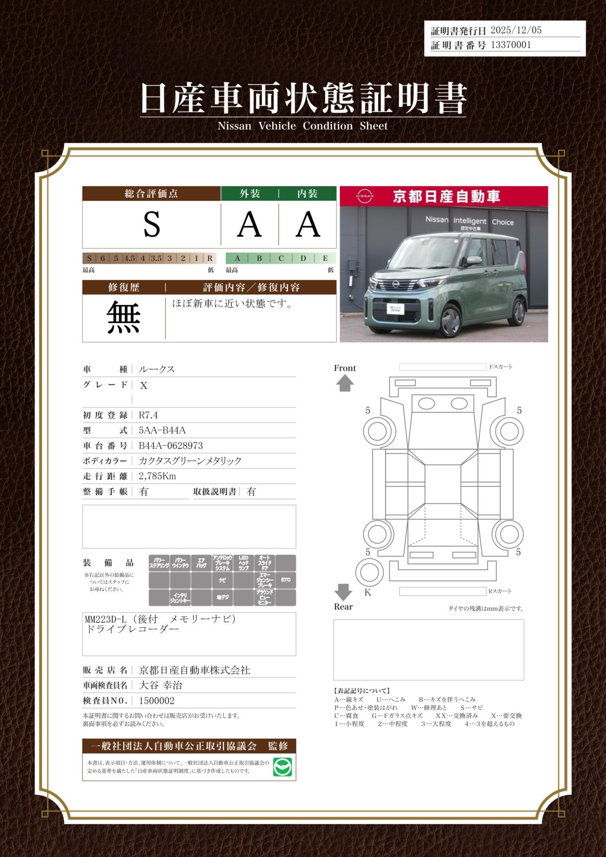 ルークス 660cc 660 X 社有車アップ純正ナビ全方位カメラドラレコ