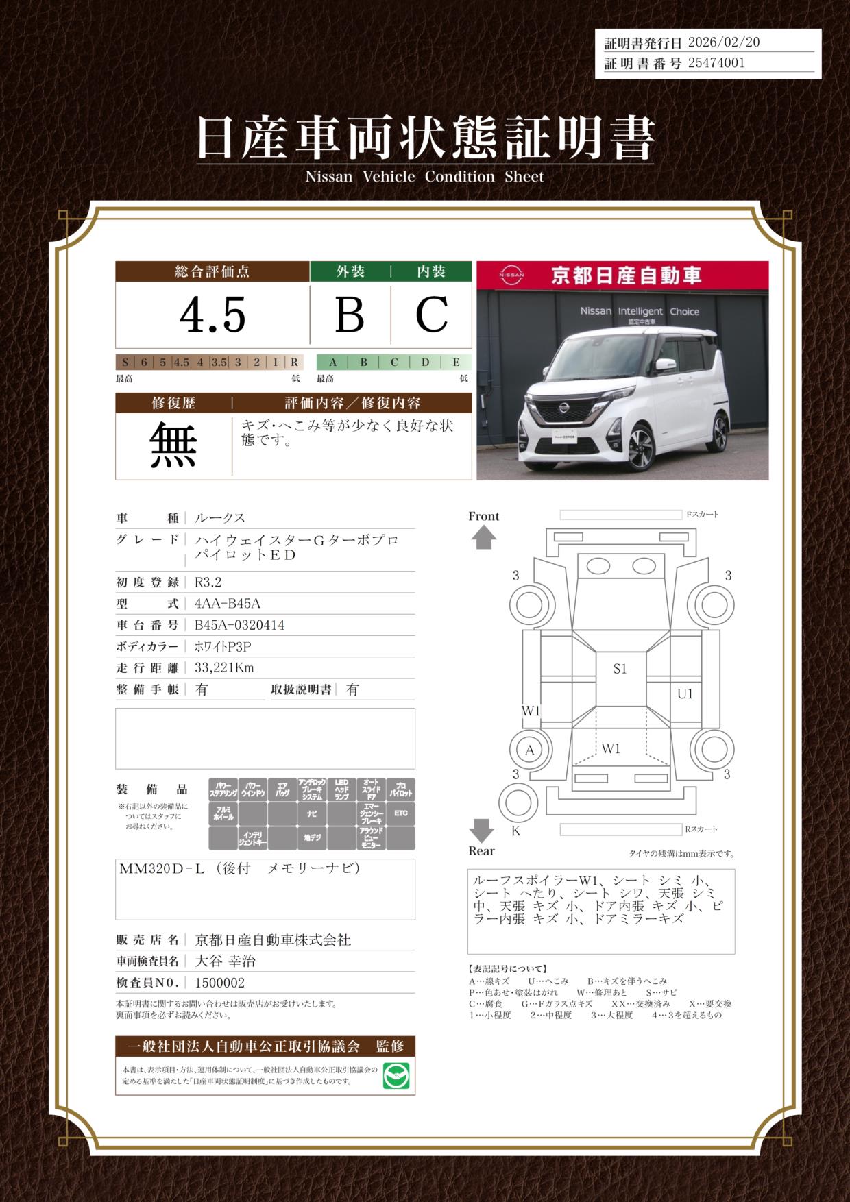 純正ナビ全方位カメラドラレコETCワンオーナー当店では、ご安心頂く為に、ご来店頂きお車のご確認をおススメしております。