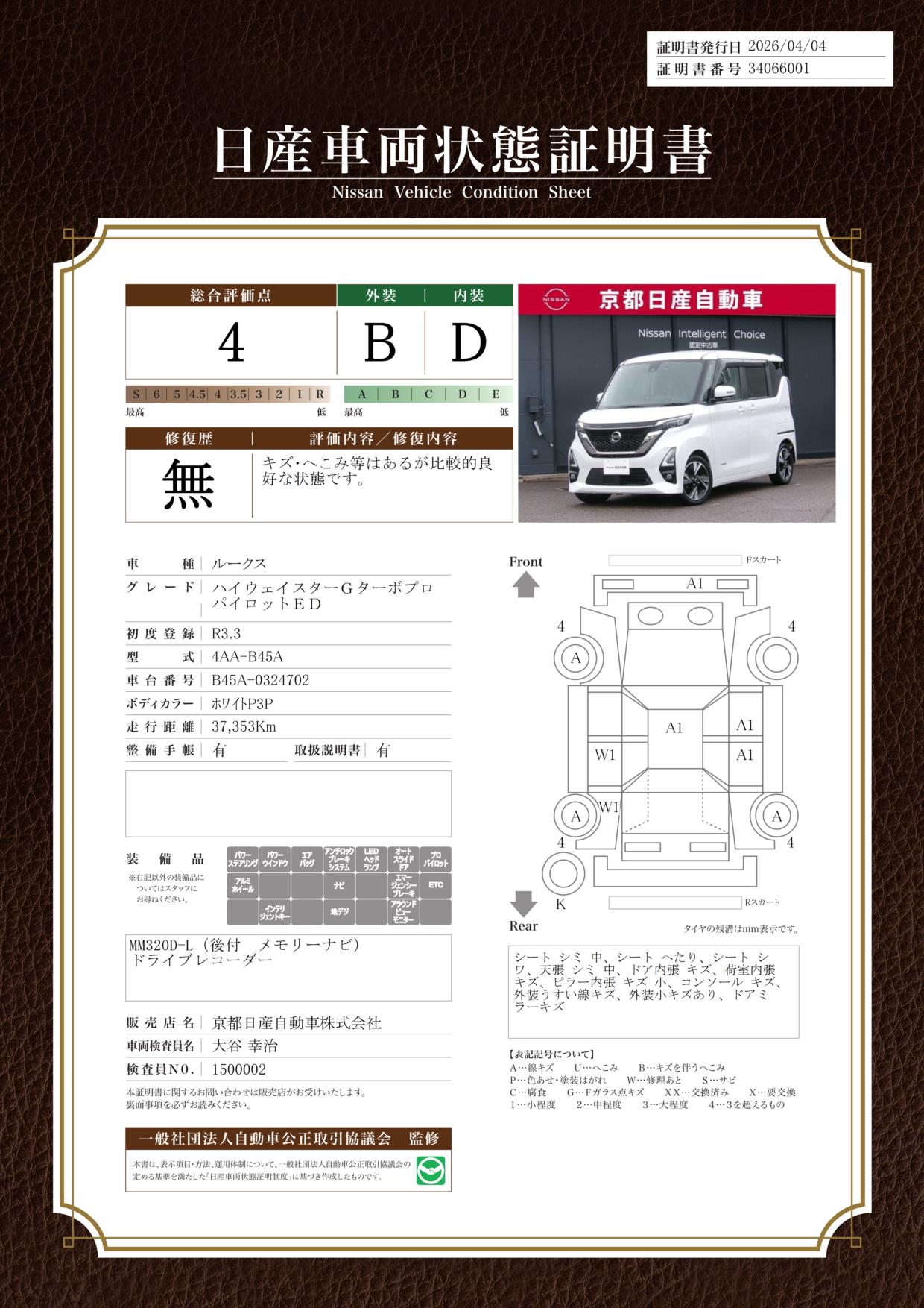 プロパイロットナビ全方位カメラドラレコワンオーナー当店では、ご安心頂く為に、ご来店頂きお車のご確認をおススメしております。