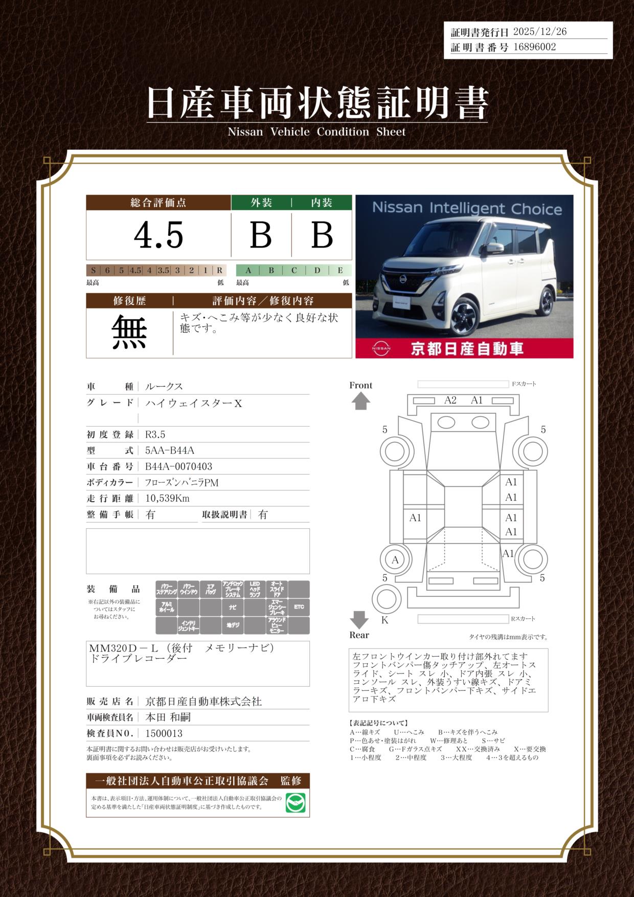 京都日産自動車『日産カーパレス伏見店』です!! 当店では1度ご来店頂いて実際にお車をご確認頂いていただける方に販売させていただいております、ご了承下さい。 ご来店の際は事前に在庫・商談状況の確認をお願いします。 ●日産ディーラーで買うおススメポイント! 日産の販売店の中古車には全社無料で「ワイド保証」が付いております。(一部加入が出来ない車両もございます。)