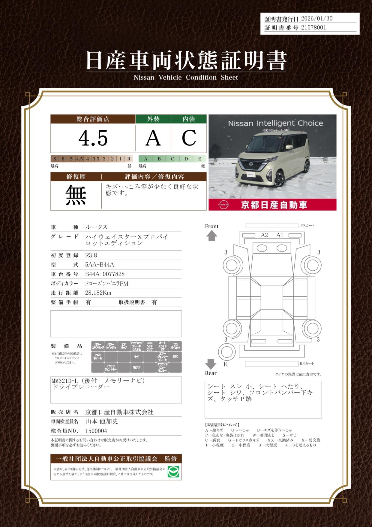 現状括弧書き内の年月まで車検有効期限が残っていますが、ご成約時に新しく車検を取り直します。なお取り直しの費用は車両価格に含まれています。
