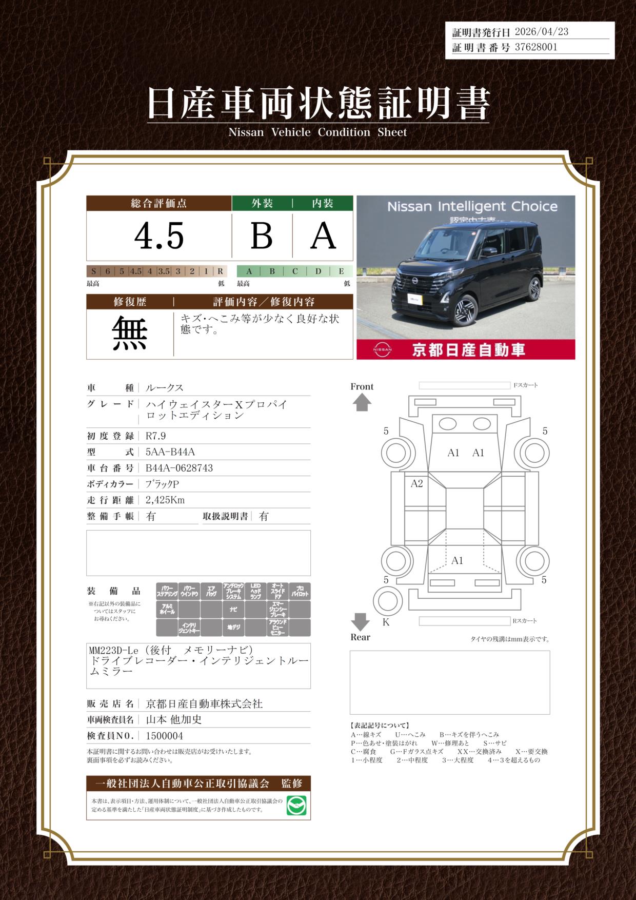 「車両状態証明書」は、査定協会監修のプロの検査員が公正かつ確かな基準で検査した”安心の証”です。