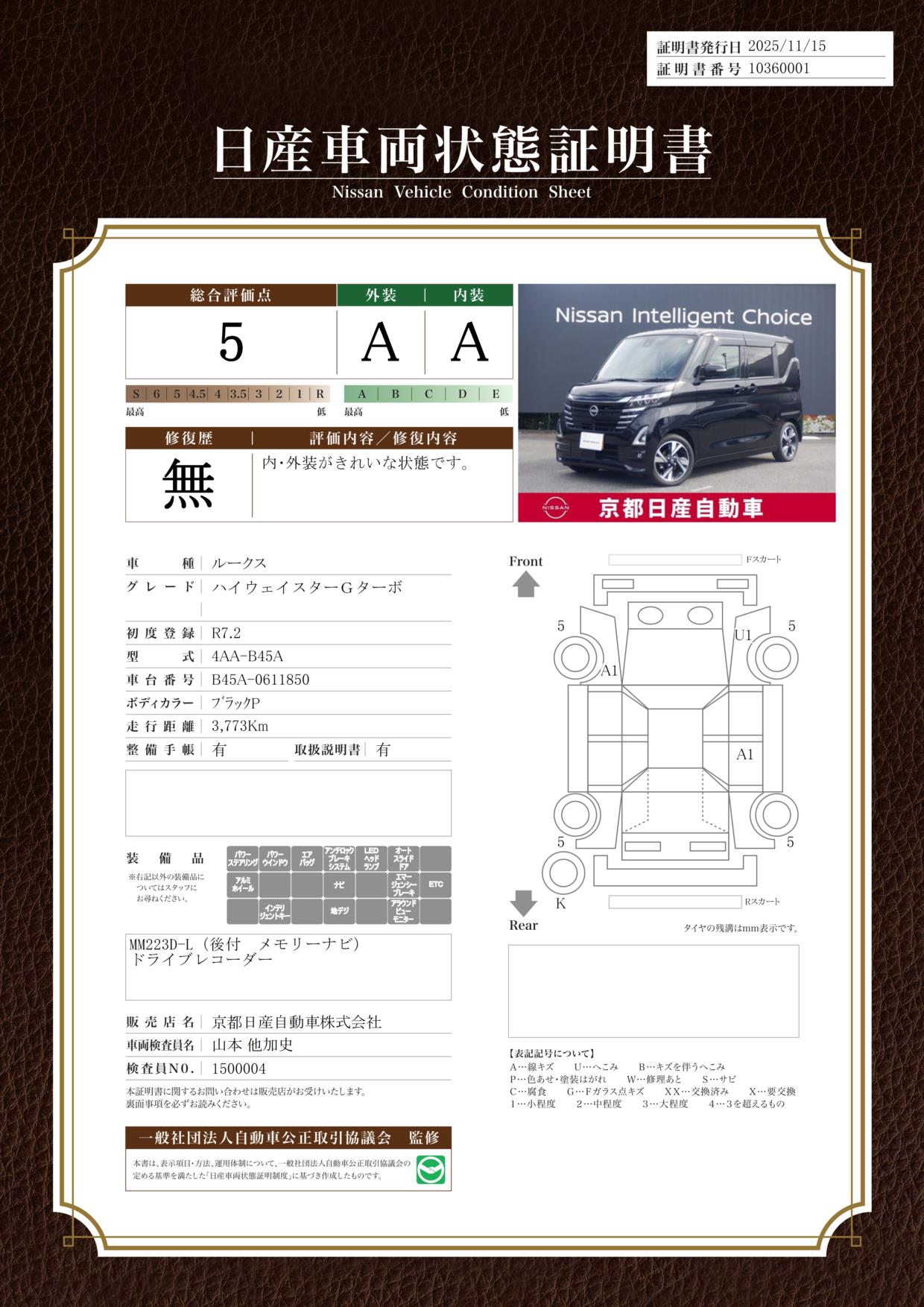 ルークス 660cc 660 ハイウェイスターGターボ 社有車アップナビ全方位カメラドラレコ