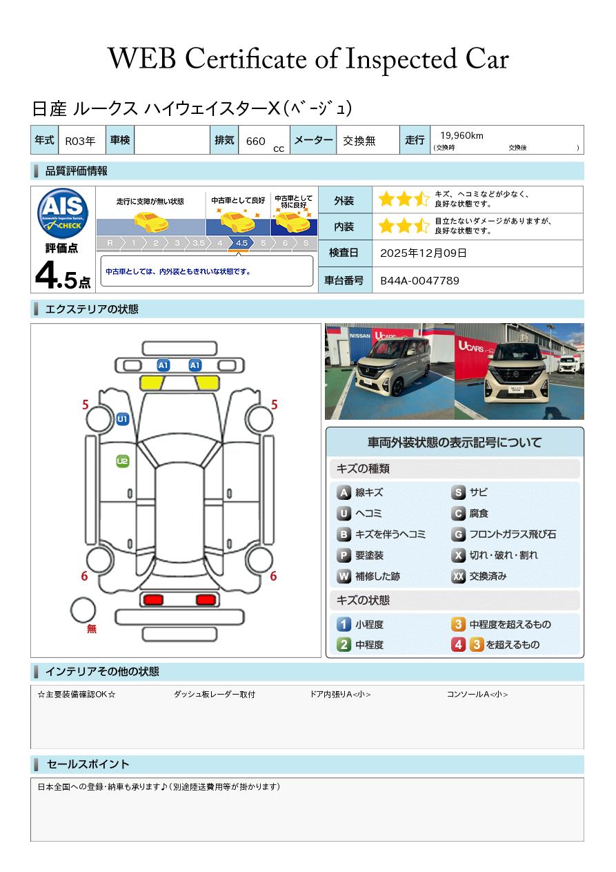 現状車検切れの状態ですが、ご成約時に新しく車検を実施します。車検費用は車両価格に含まれています。