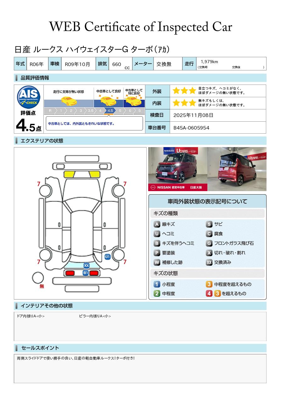 両側スライドドアで使い勝手の良い、日産の軽自動車ルークス!ターボ付き!当店のお車はトラブル防止の為、一度のご来店をお願いしております。