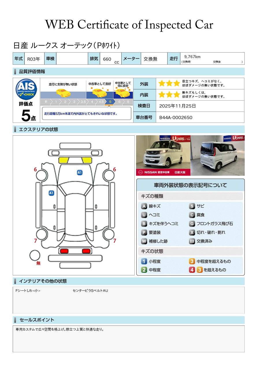 評価点イメージ : 走行距離5万kmまで内外装がとてもきれいな状態です。
