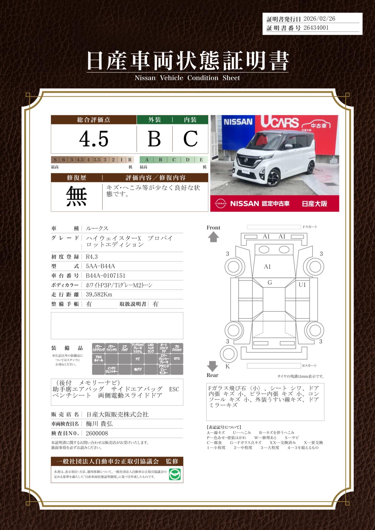 日産大阪UCARS枚方『日産認定中古車保証24ケ月』:延長保証もございます。快適パック・左右ハンズフリーA・アラウンド&9インチナビTV・ETC・前後ドラレコ・LED・前後踏間違防止