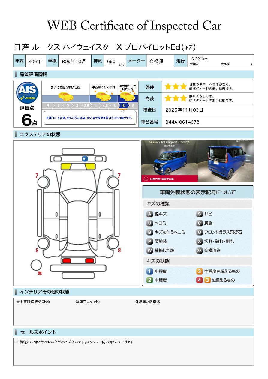 現状括弧書き内の年月まで車検有効期限が残っていますが、ご成約時に新しく車検を取り直します。なお取り直しの費用は車両価格に含まれています。