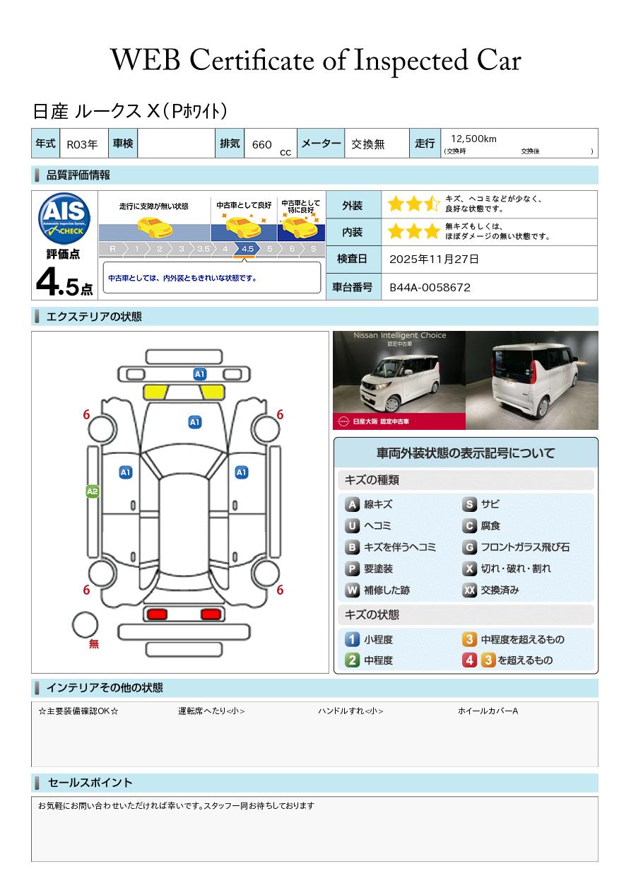 現状括弧書き内の年月まで車検有効期限が残っていますが、ご成約時に新しく車検を取り直します。なお取り直しの費用は車両価格に含まれています。
