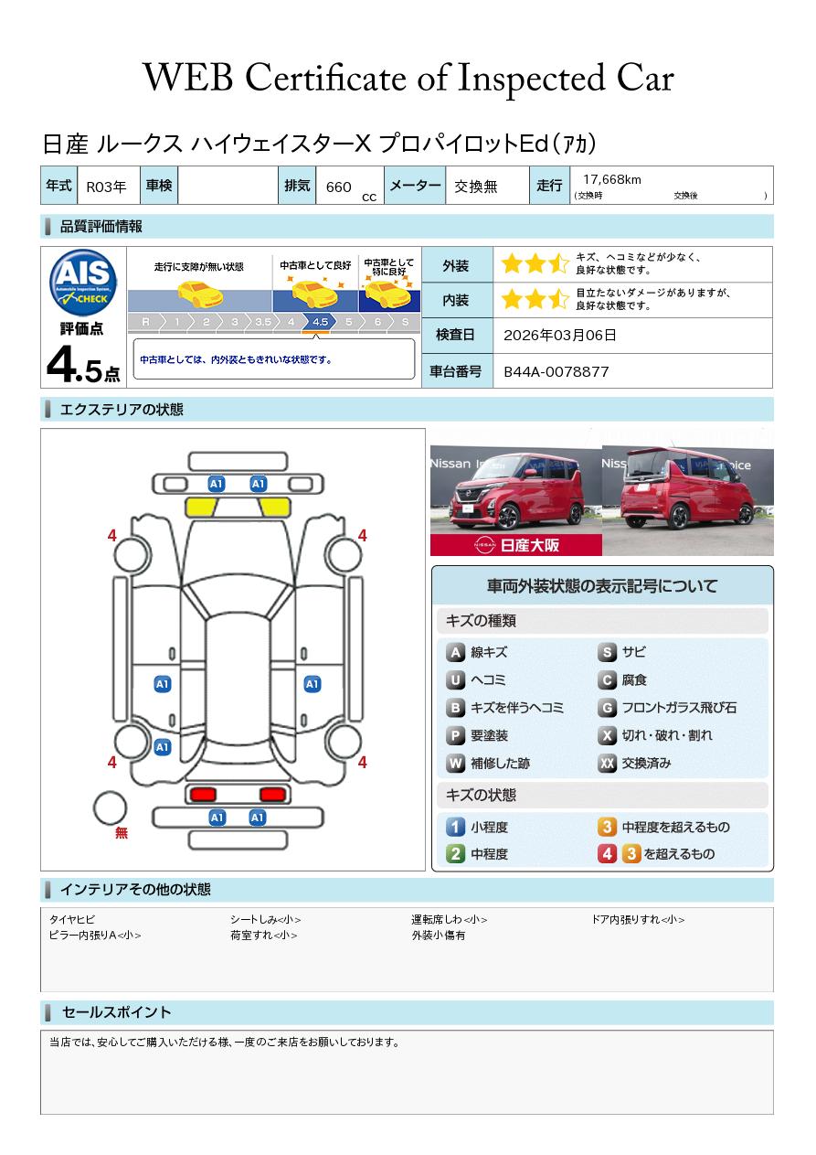 「車両状態証明書」は、査定協会監修のプロの検査員が公正かつ確かな基準で検査した”安心の証”です。