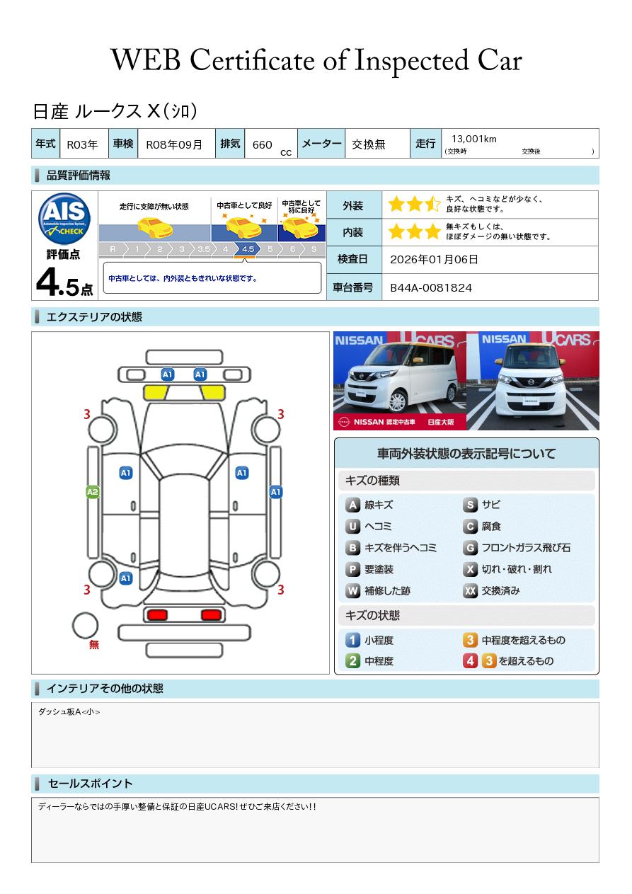 ディーラーならではの手厚い整備と保証の日産UCARS!ぜひご来店ください!!走りの良いルークスです!安全装備も充実しています!9インチナビは画面が大きくて見やすいですね!!