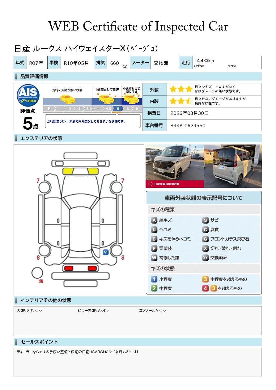 「車両状態証明書」は、査定協会監修のプロの検査員が公正かつ確かな基準で検査した”安心の証”です。
