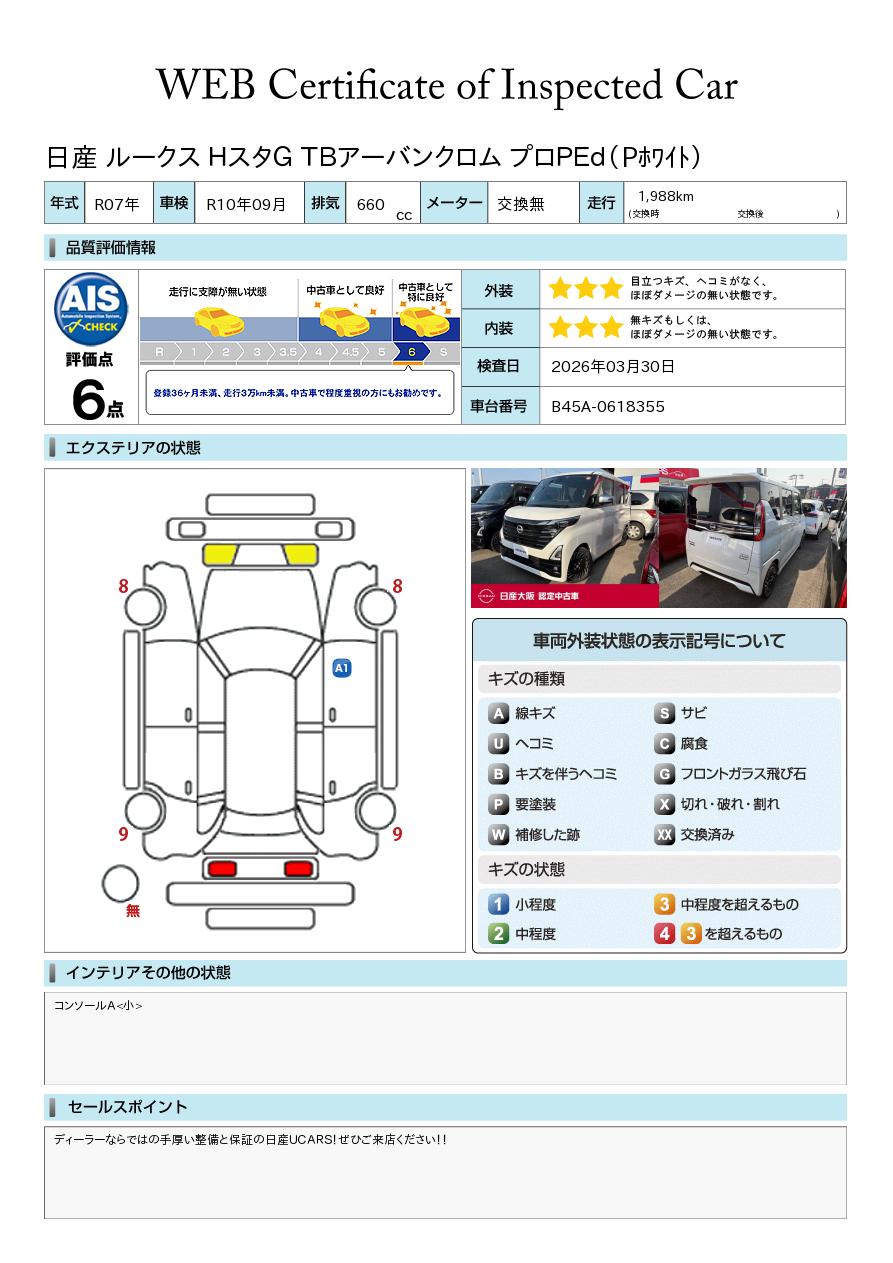 「車両状態証明書」は、査定協会監修のプロの検査員が公正かつ確かな基準で検査した”安心の証”です。