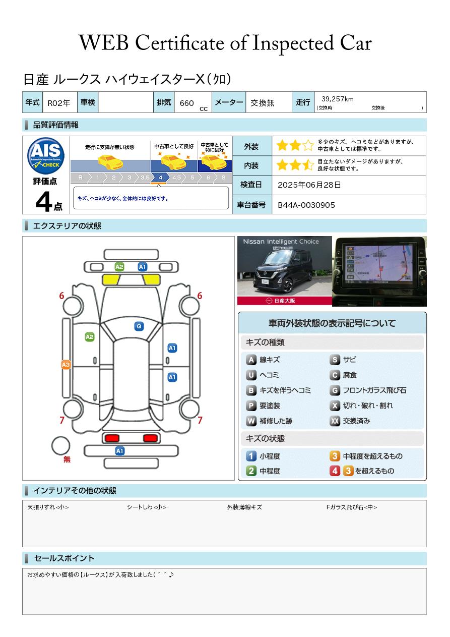 ルークス 660cc 660 ハイウェイスターX 元試乗車 衝突軽減ブレーキ
