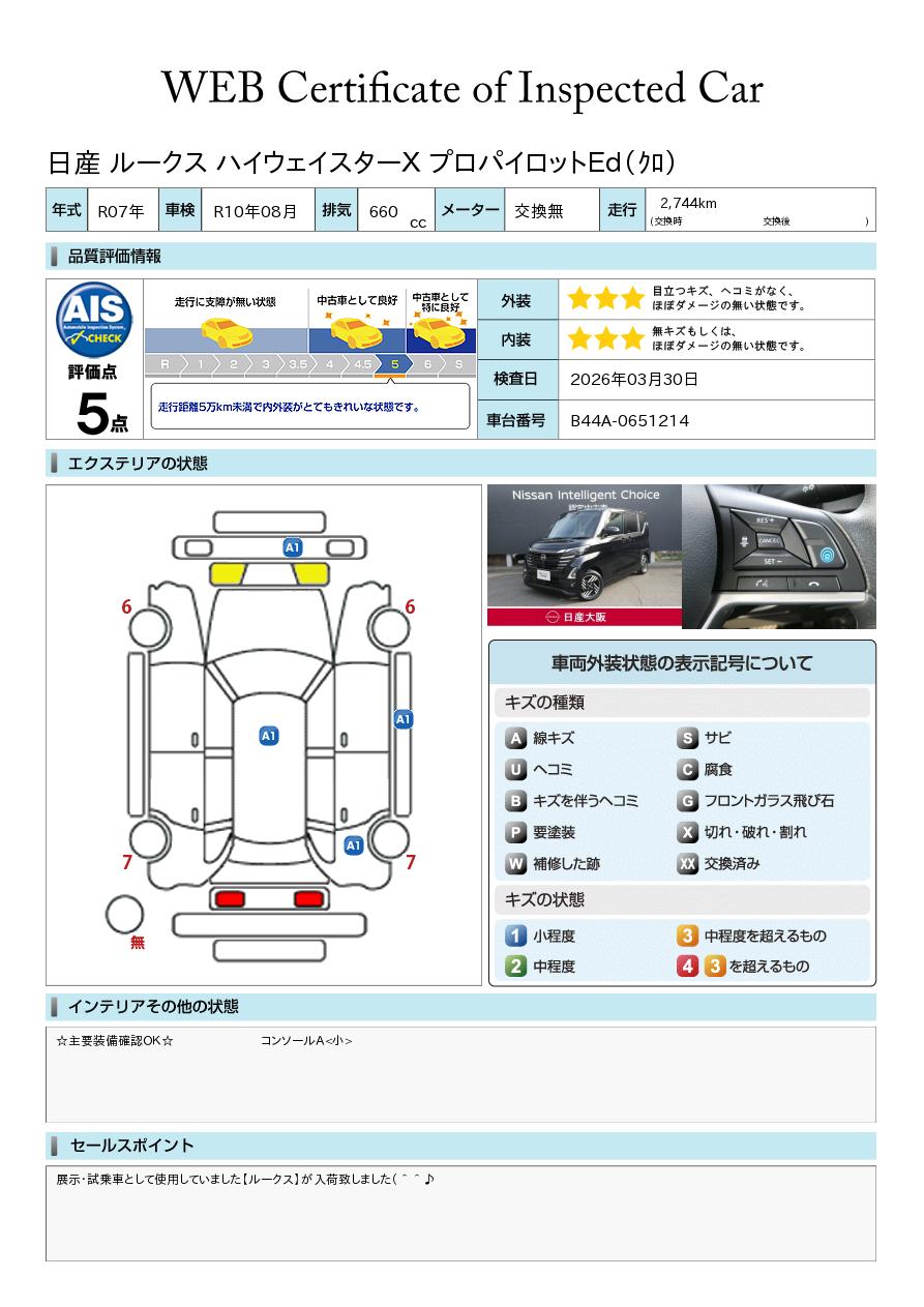 ルークス660 ハイウェイスターX プロパイロット エディション 試乗車アップ車両 元社有車 元社用車