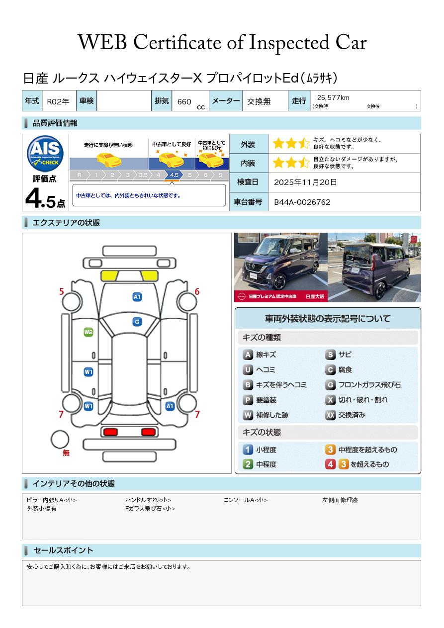 現状括弧書き内の年月まで車検有効期限が残っていますが、ご成約時に新しく車検を取り直します。なお取り直しの費用は車両価格に含まれています。
