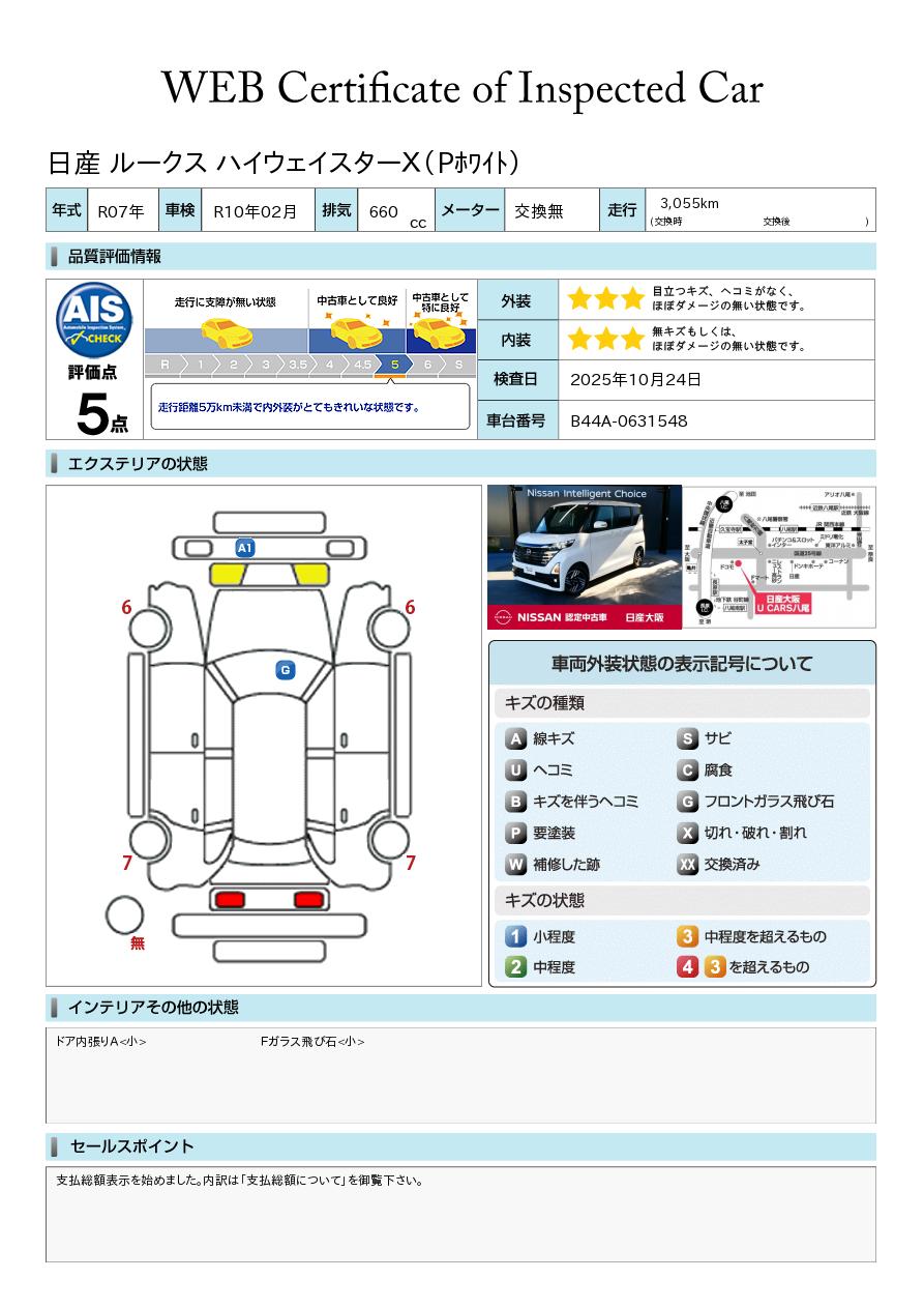 ルークス 660cc 660 ハイウェイスターX 元試乗車 衝突軽減ブレーキ