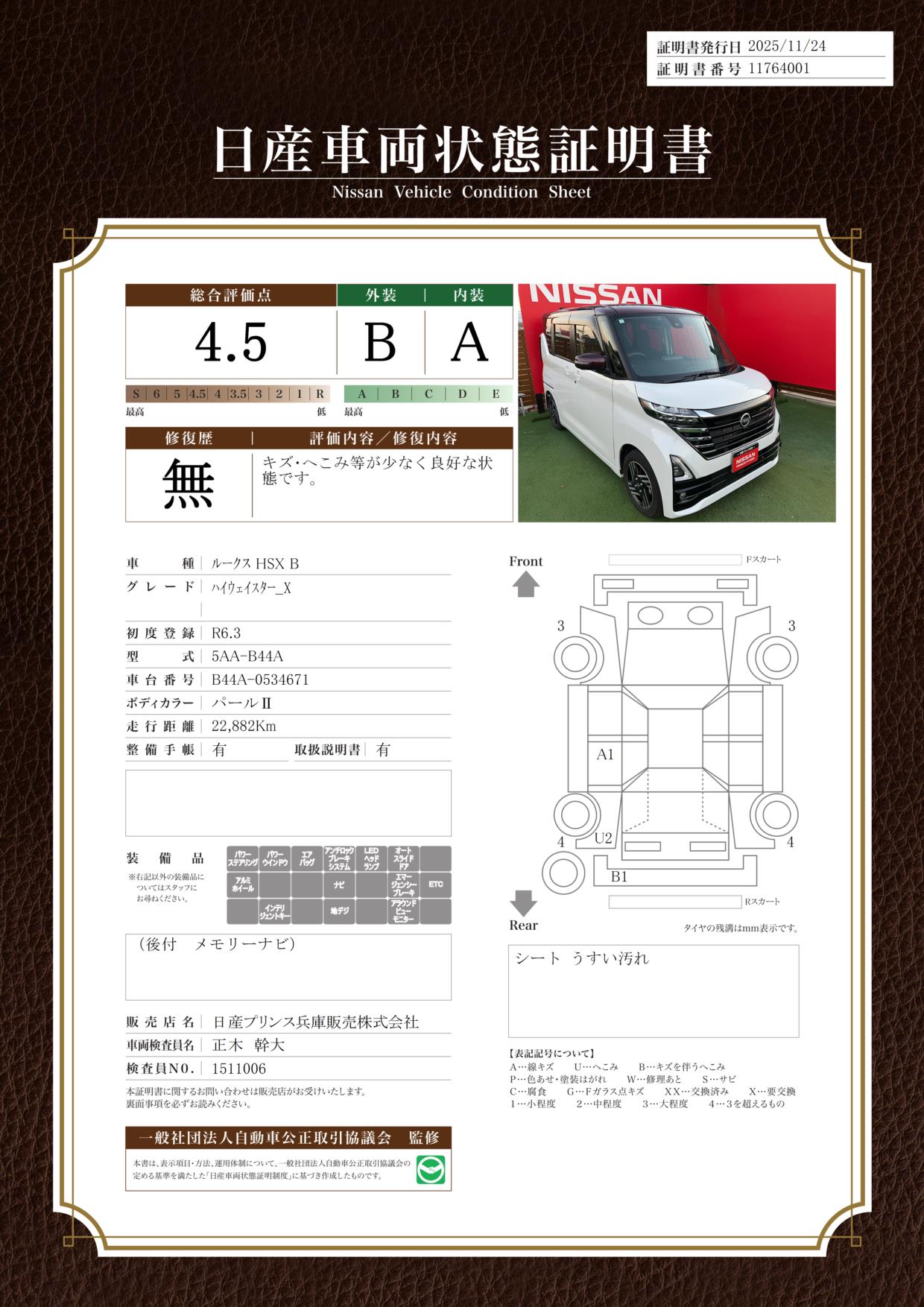 ルークス 660cc 660 ハイウェイスターX 純正メモリーナビ・アラウンドビューモニタ