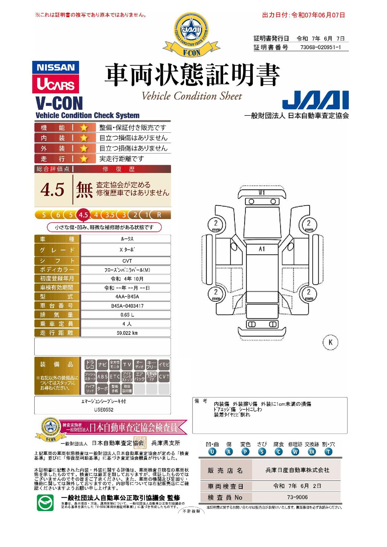 現状括弧書き内の年月まで車検有効期限が残っていますが、ご成約時に新しく車検を取り直します。なお取り直しの費用は車両価格に含まれています。