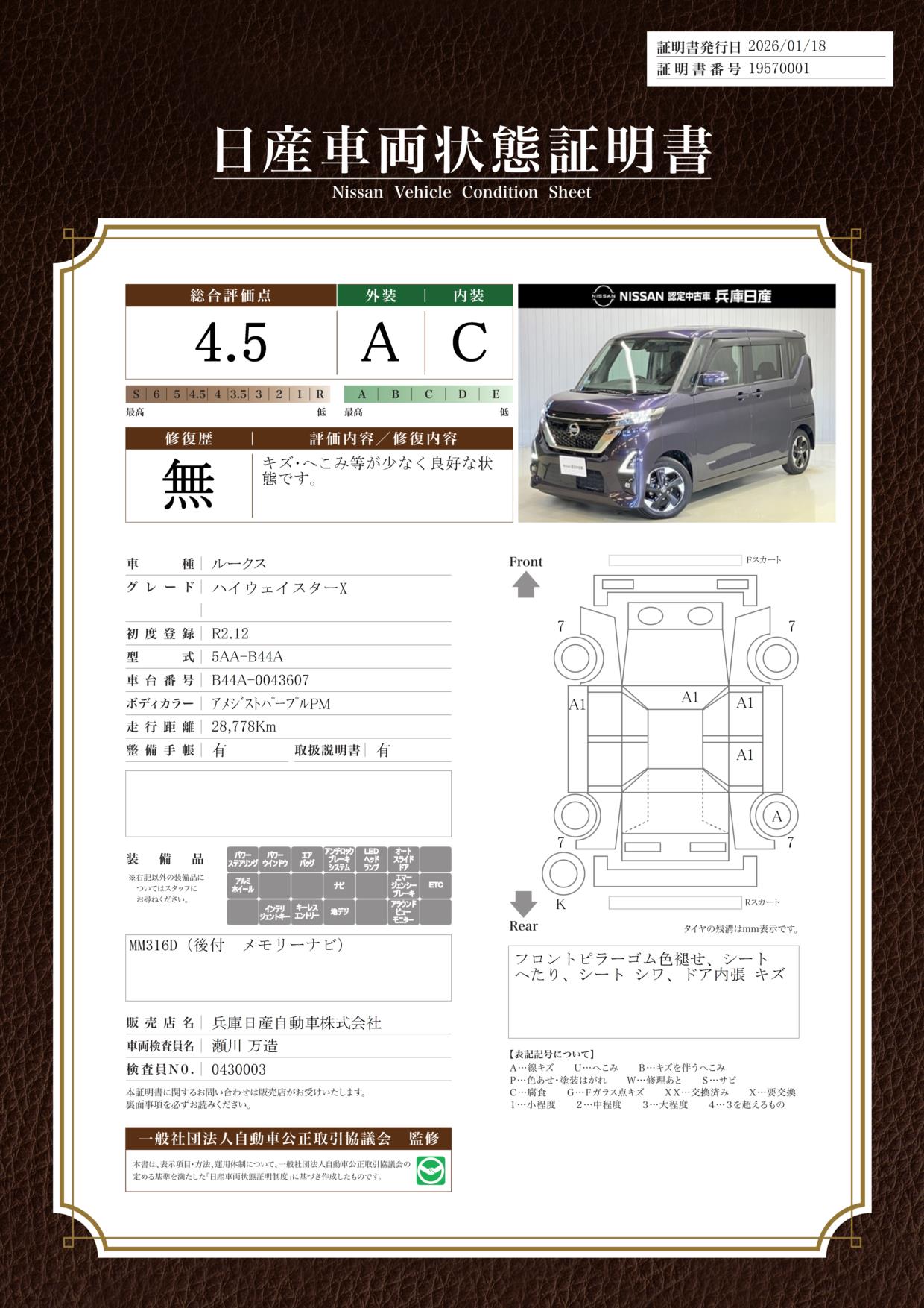 660 ハイウェイスターX 当社社用車アップ・純正9インチメモリーナ