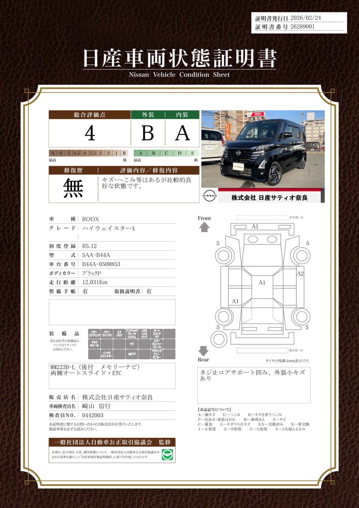 現状括弧書き内の年月まで車検有効期限が残っていますが、ご成約時に新しく車検を取り直します。なお取り直しの費用は車両価格に含まれています。