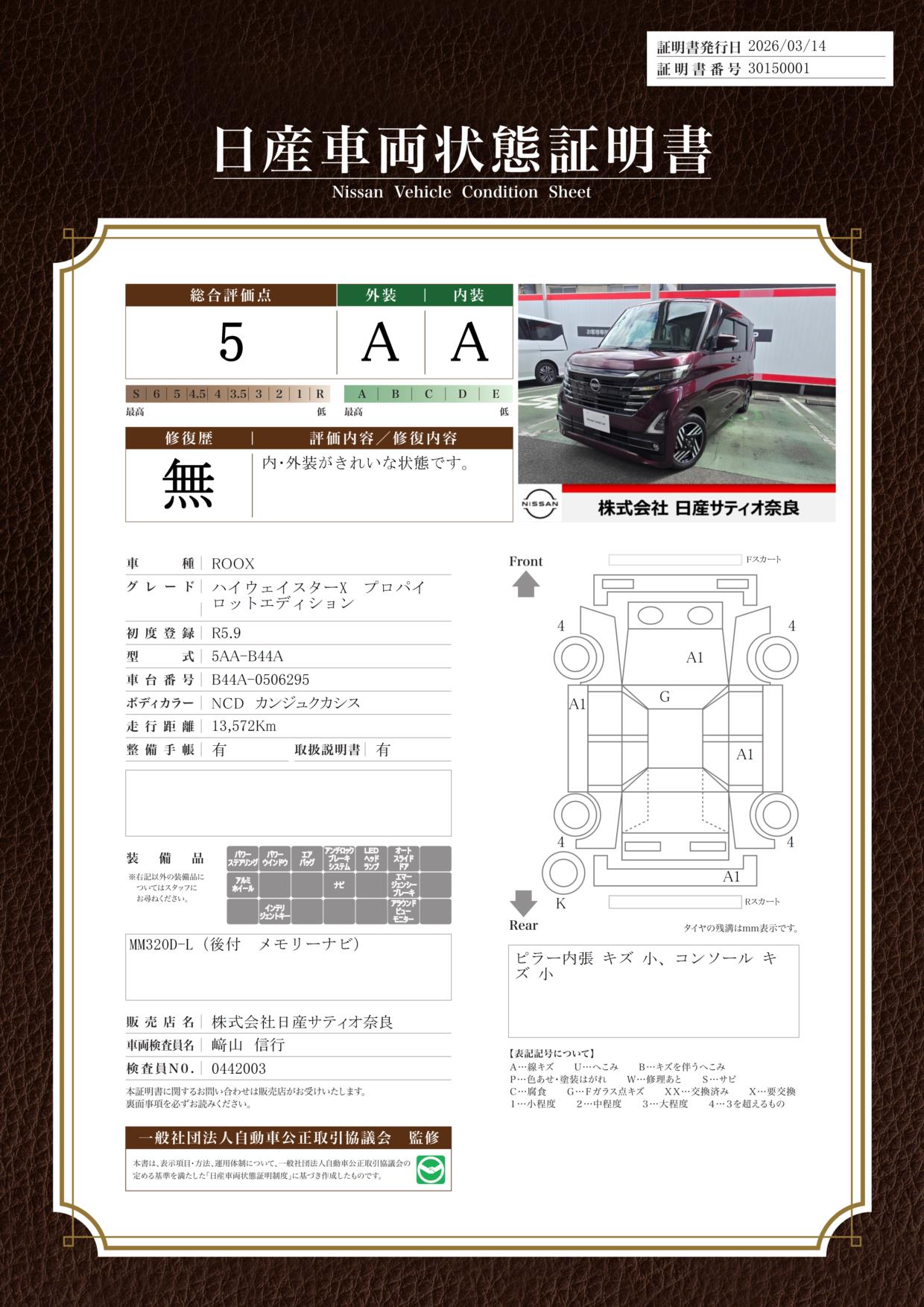 現状括弧書き内の年月まで車検有効期限が残っていますが、ご成約時に新しく車検を取り直します。なお取り直しの費用は車両価格に含まれています。