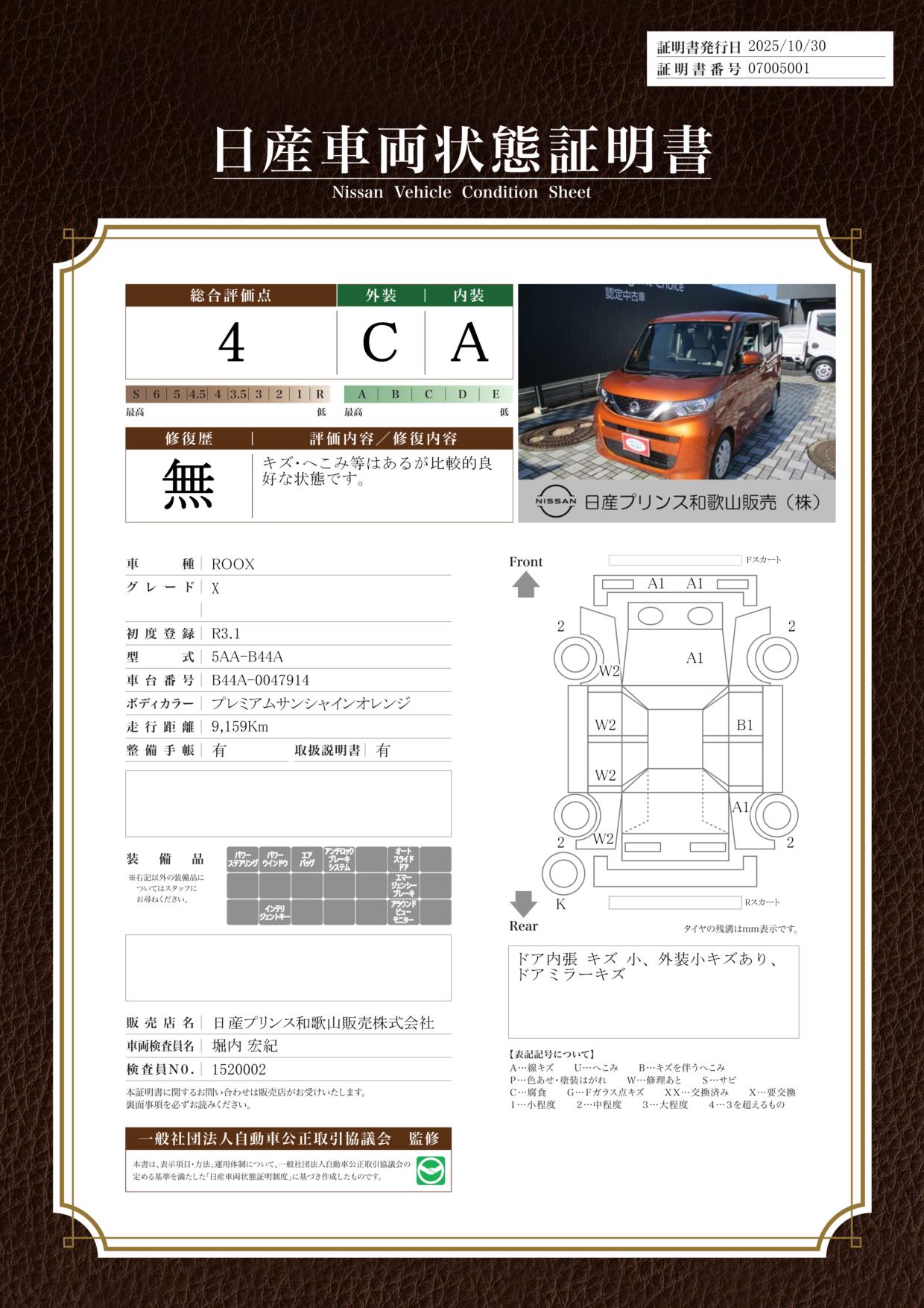 現状括弧書き内の年月まで車検有効期限が残っていますが、ご成約時に新しく車検を取り直します。なお取り直しの費用は車両価格に含まれています。