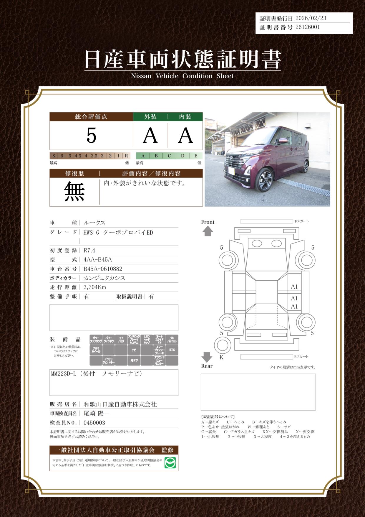日産車両状態証明