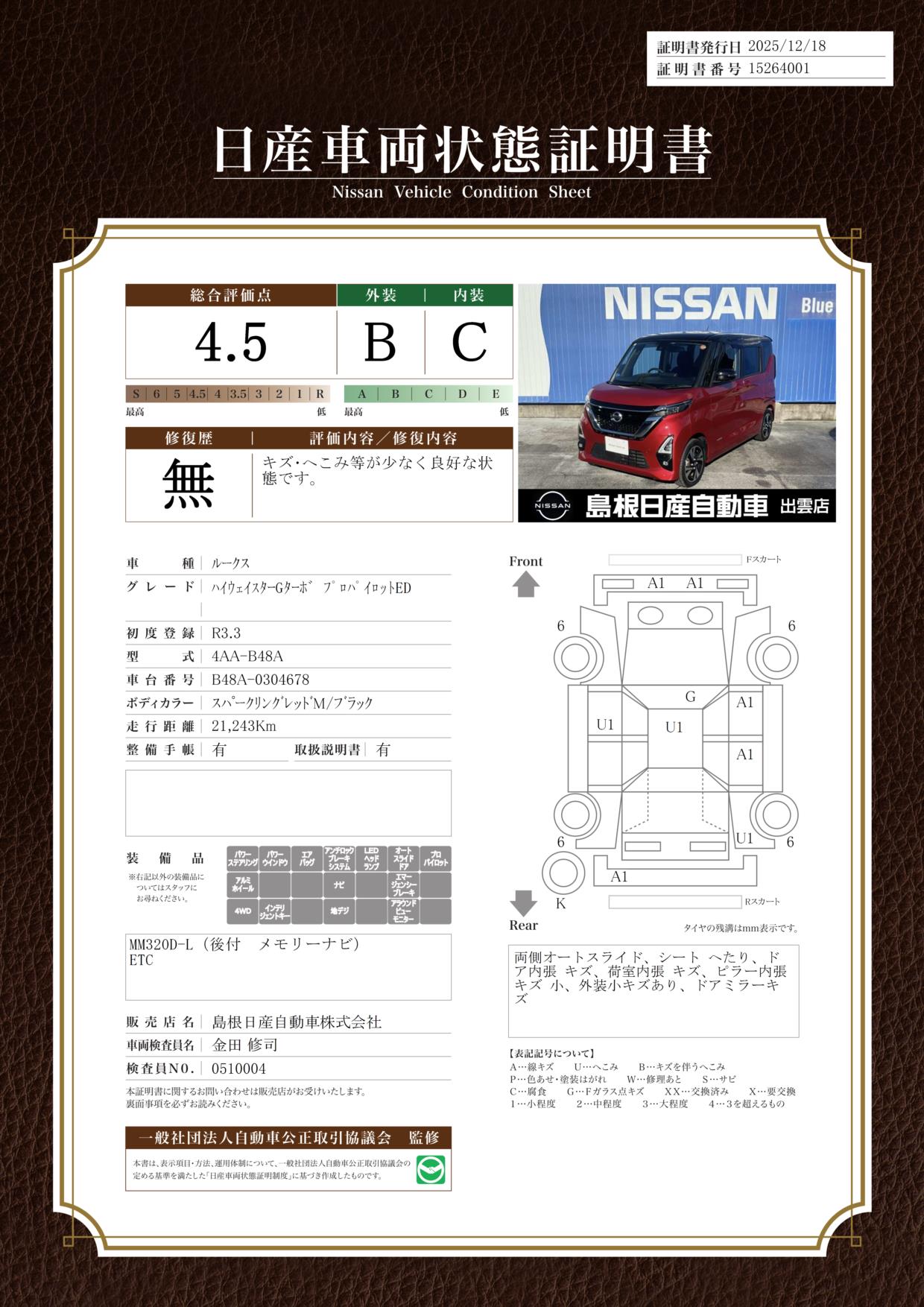現状車検切れの状態ですが、ご成約時に新しく車検を実施します。車検費用は車両価格に含まれています。