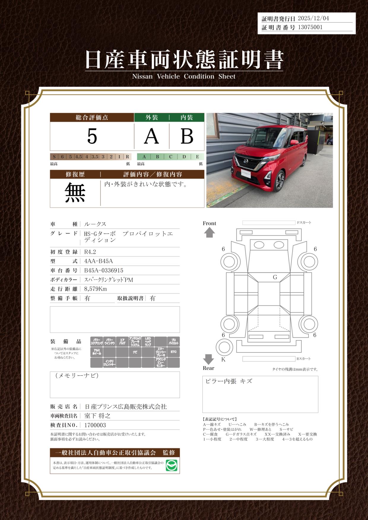 現状括弧書き内の年月まで車検有効期限が残っていますが、ご成約時に新しく車検を取り直します。なお取り直しの費用は車両価格に含まれています。