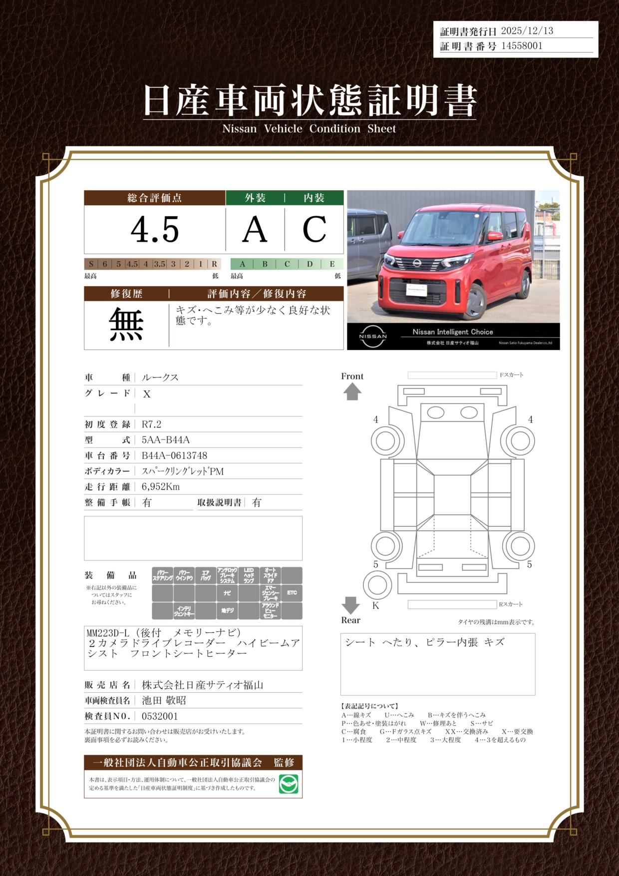 当店は全車に『車両状態証明書』を掲示〇◎状態証明書をもとに安心しておクルマをお選びいただけます_(._.)_