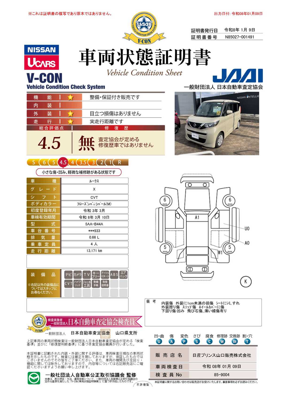 現状括弧書き内の年月まで車検有効期限が残っていますが、ご成約時に新しく車検を取り直します。なお取り直しの費用は車両価格に含まれています。
