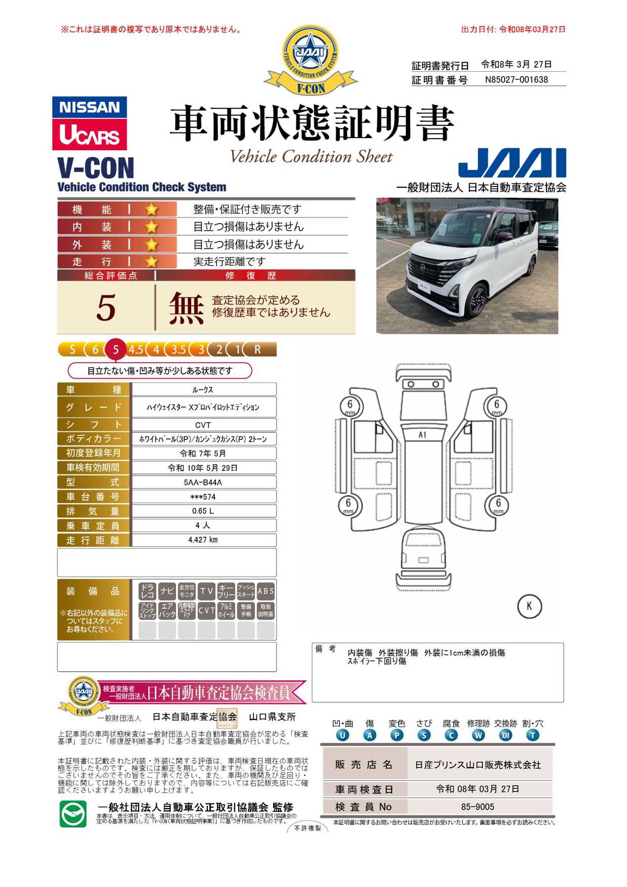 「車両状態証明書」は、査定協会監修のプロの検査員が公正かつ確かな基準で検査した”安心の証”です。