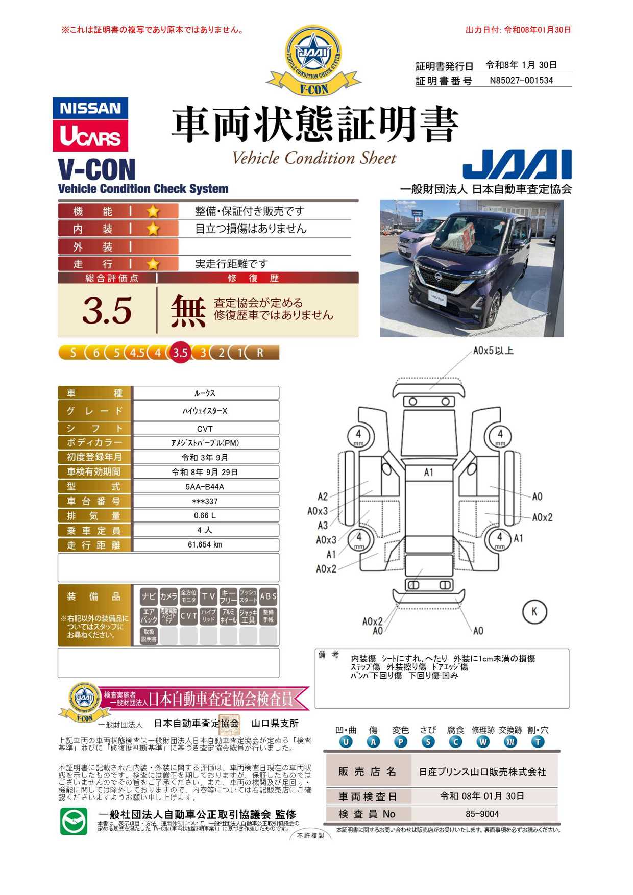 購入から3か月間、走行距離無制限で保証。