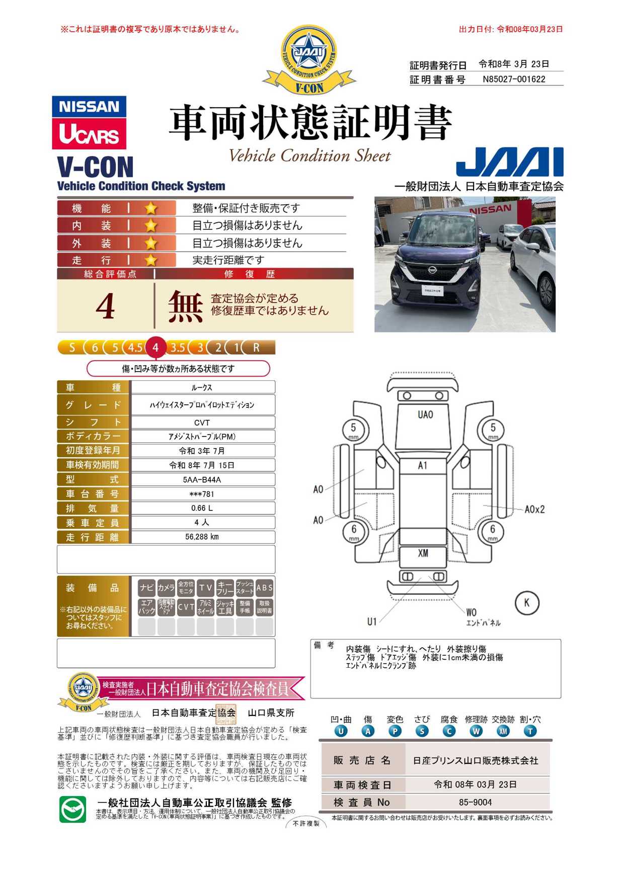 現状括弧書き内の年月まで車検有効期限が残っていますが、ご成約時に新しく車検を取り直します。なお取り直しの費用は車両価格に含まれています。