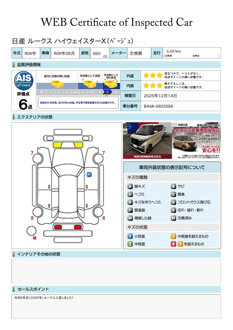 ルークス 660cc 660 ハイウェイスターX 禁煙車 全周囲カメラ 純正ディスプレイオー