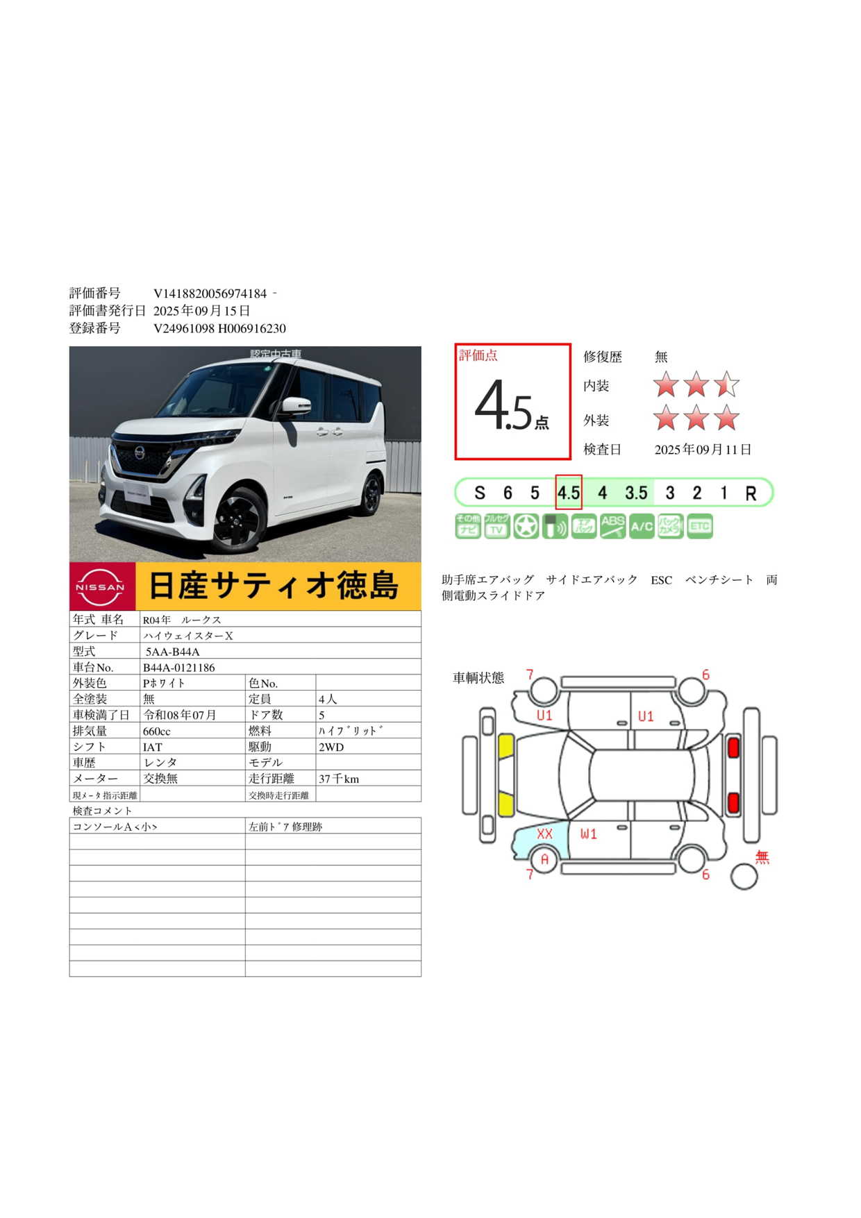 現状車検切れの状態ですが、ご成約時に新しく車検を実施します。車検費用は車両価格に含まれています。