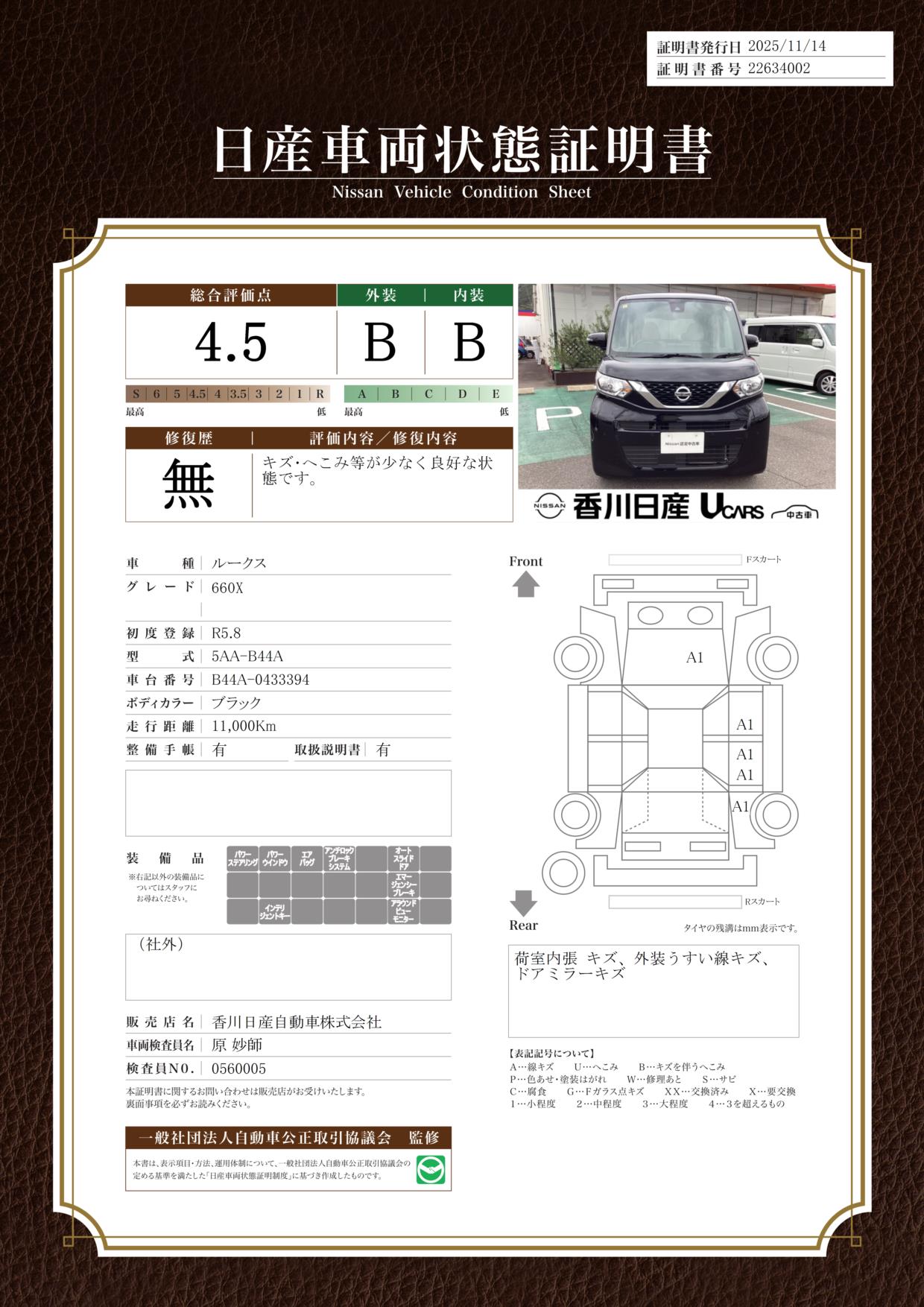 660 X 弊社社用車・禁煙車・全方位モニター