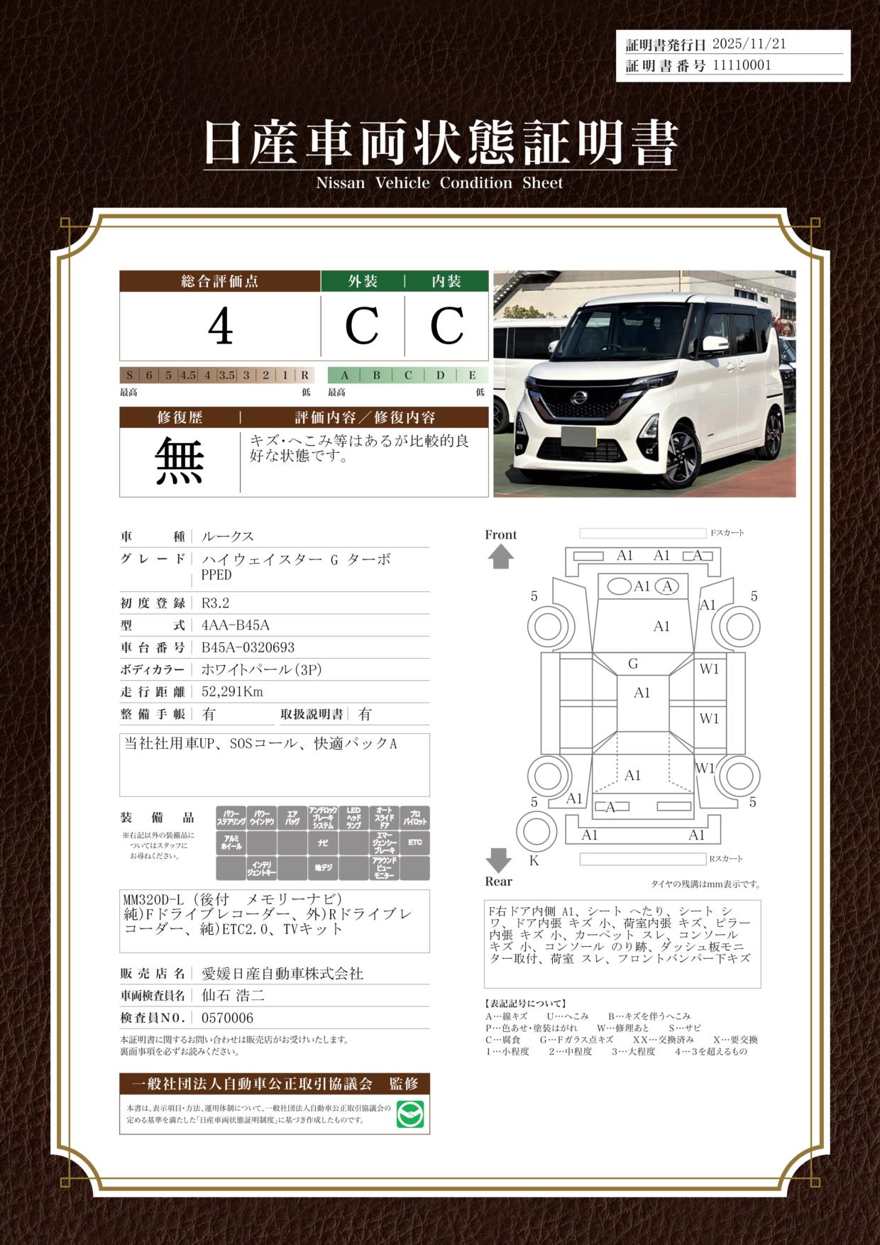現状車検切れの状態ですが、ご成約時に新しく車検を実施します。車検費用は車両価格に含まれています。