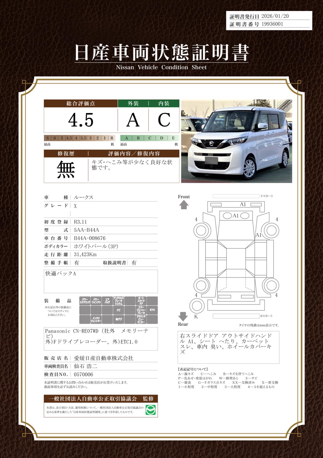 現状車検切れの状態ですが、ご成約時に新しく車検を実施します。車検費用は車両価格に含まれています。