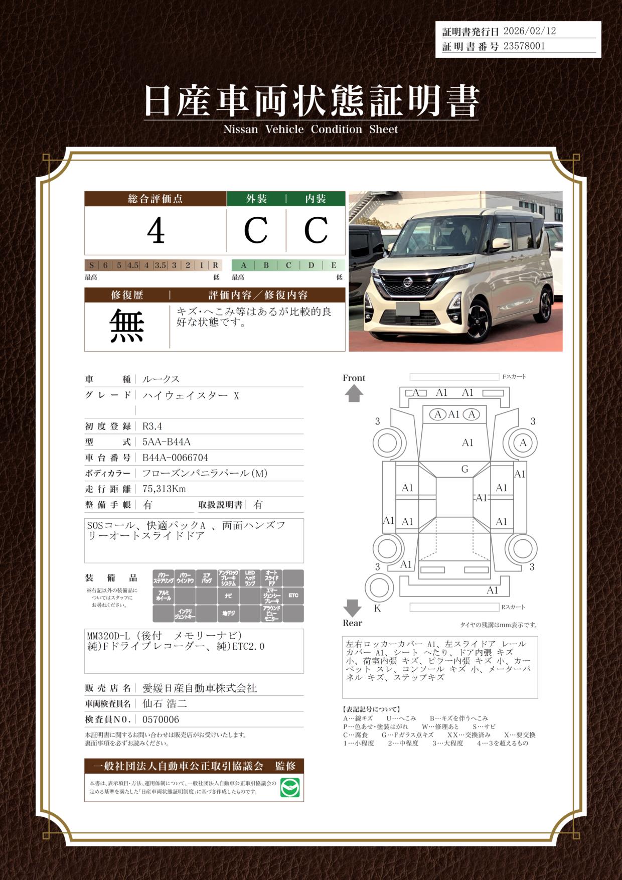 現状車検切れの状態ですが、ご成約時に新しく車検を実施します。車検費用は車両価格に含まれています。